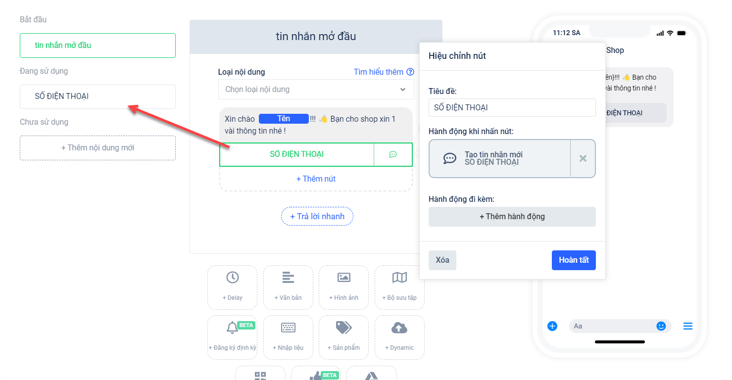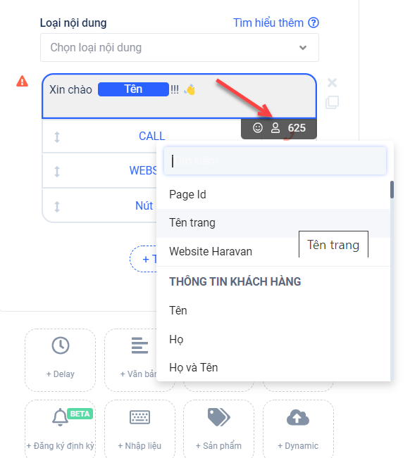 Các chức năng hiệu chỉnh nội dung tin nhắn sẽ hỗ trợ bạn thiết lập các tin nhắn, kịch bản giúp chăm sóc khách hàng tốt hơn.