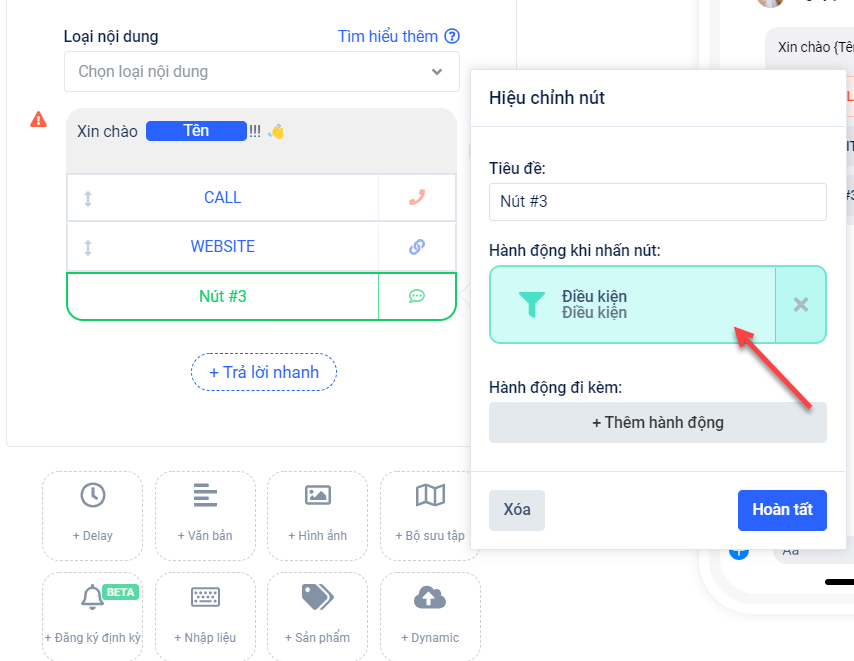 Các Tính Năng Trong Nút Hiệu Chỉnh Nội Dung Tin Nhắn Chatbot
