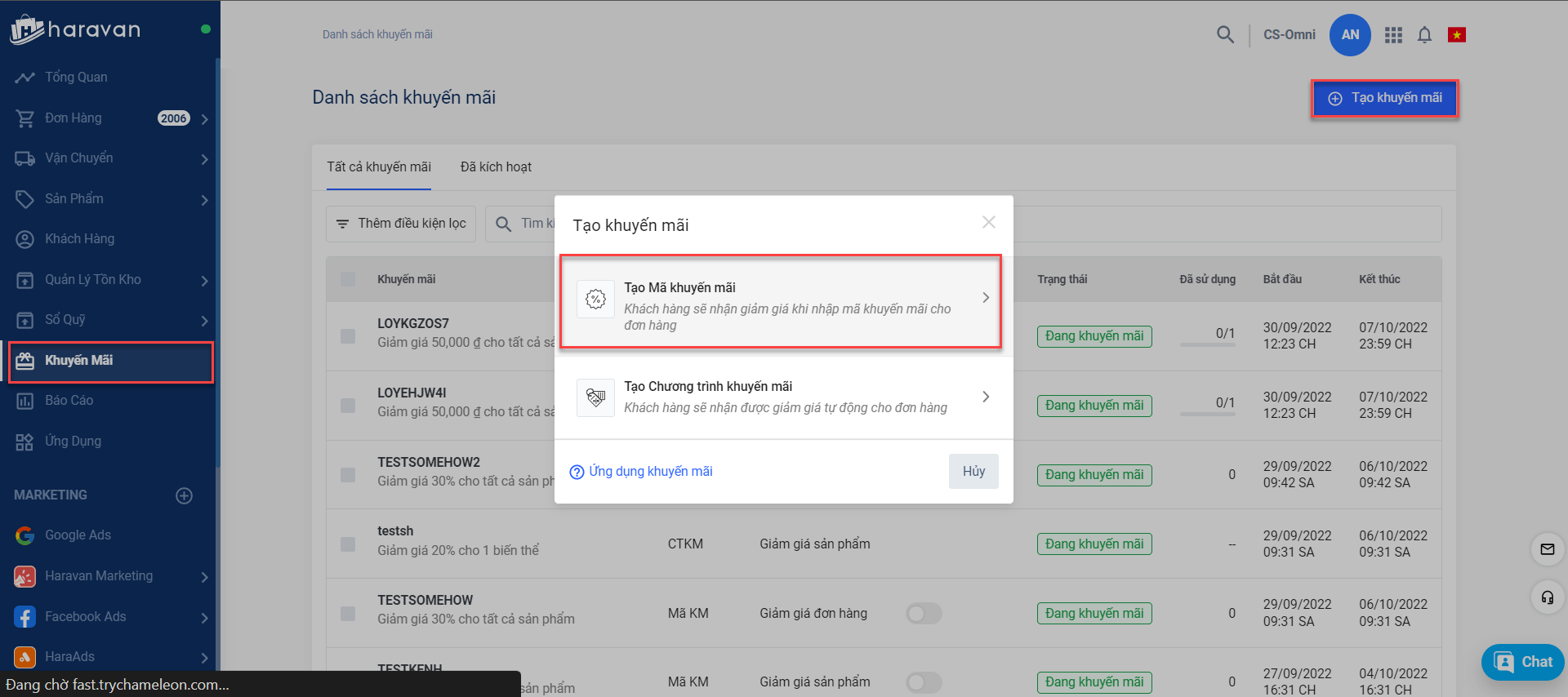 - Tạo mã khuyến mãi từ Haravan trang quản trị MyHaravan: