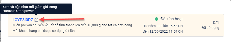 Ngoài ra bạn có thể xem được hiệu lực và số lượng sử dụng của mã khuyến mãi.