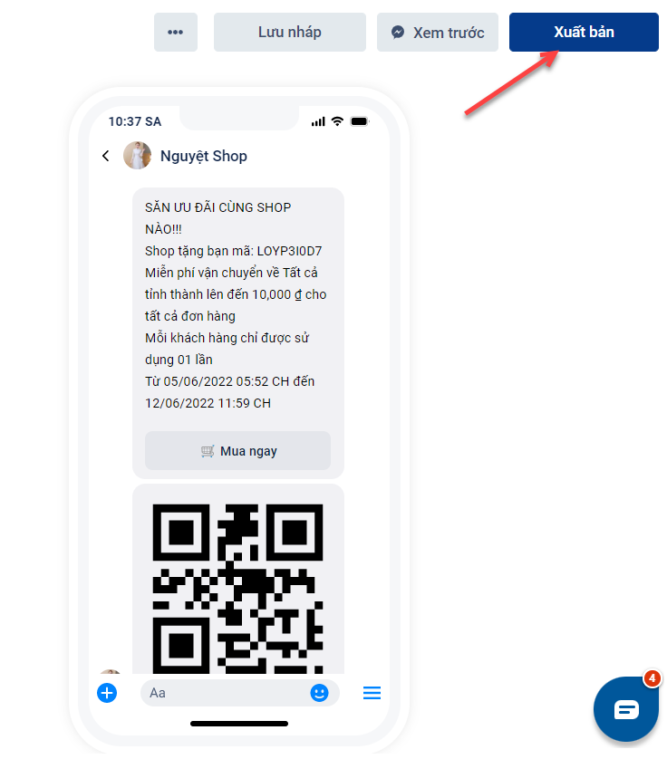 Bước 5: Nhấn Xuất bản để chatbot tự động gửi mã đến khách hàng: