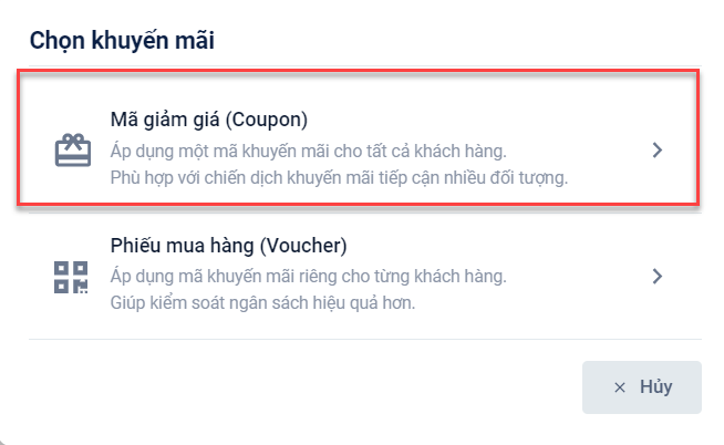 - Bước 2: Chọn “Mã giảm giá (Coupon)”