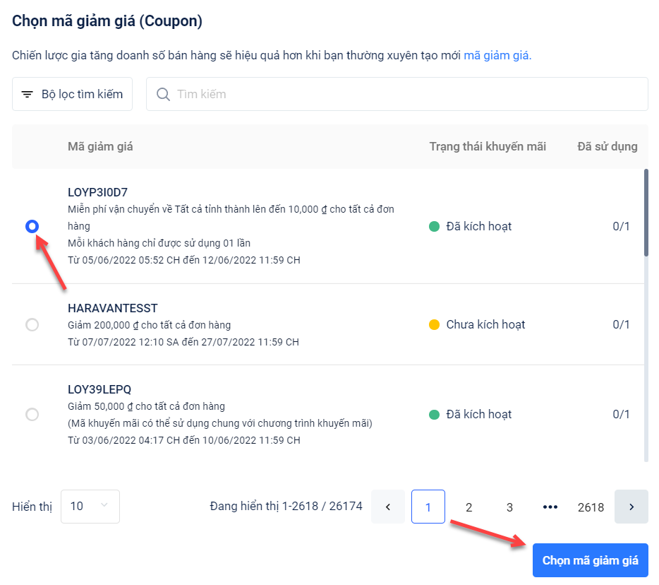 - Bước 3: Lựa chọn mã giảm giá phù hợp: