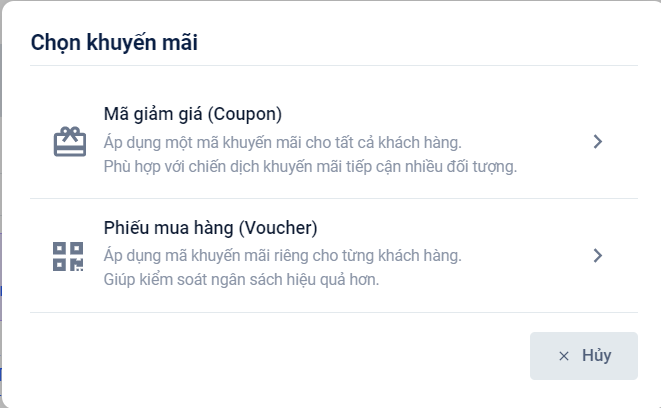 Hiện tại, Harasocial cho phép bạn có thể gửi 1 trong 2 loại khuyến mãi bao gồm: