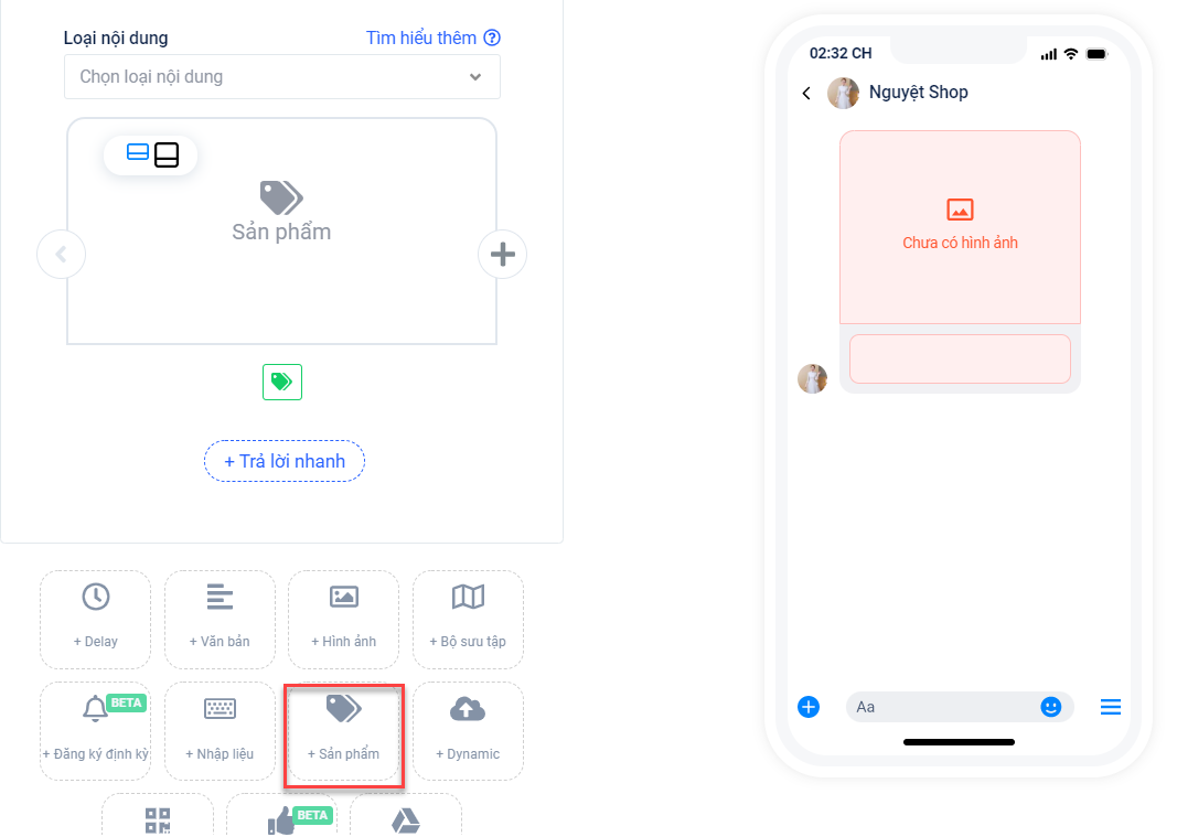 Khối tính năng này sẽ giúp bạn có thể lựa chọn nhiều sản phẩm để chèn vào kịch bản, giúp bạn có thể dễ dàng giới thiệu nhiều các sản phẩm mới, tăng cơ hội chốt hơn.