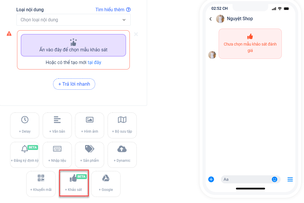 Bạn có thể tham khảo cách tạo và chèn mẫu khảo sát vào kịch bản tại đây.