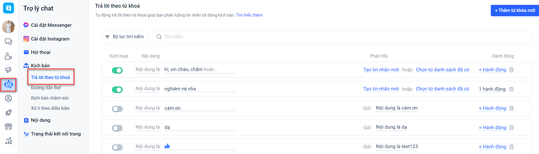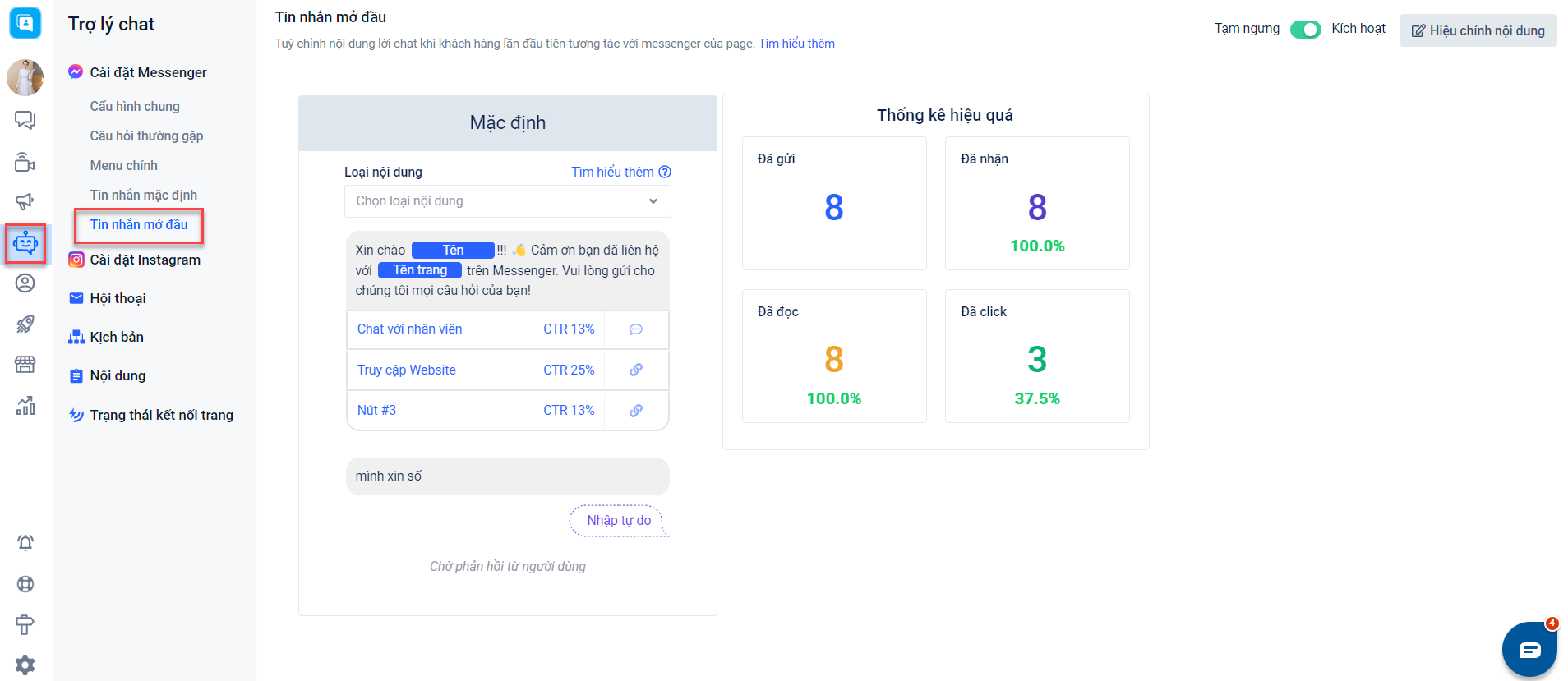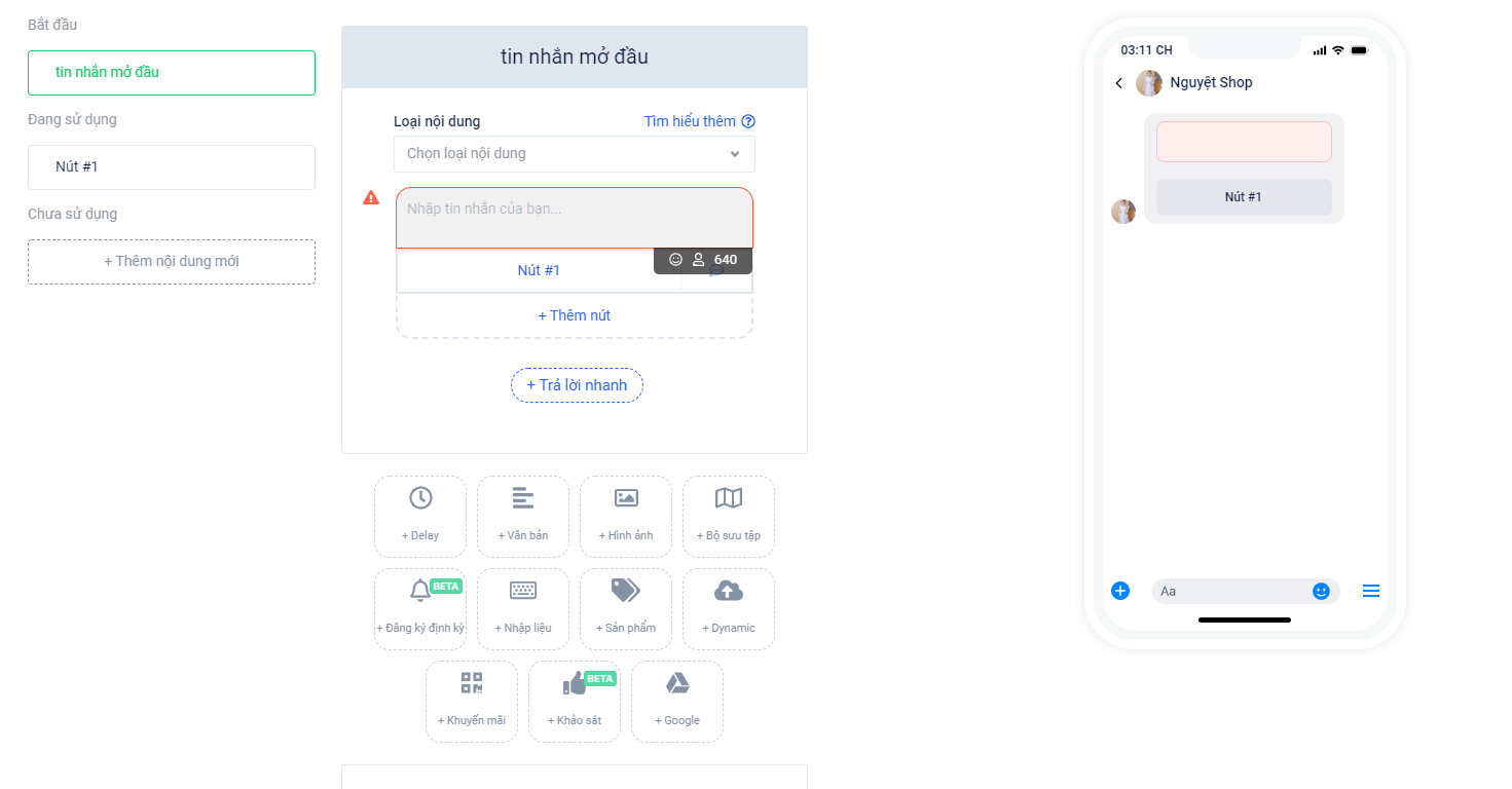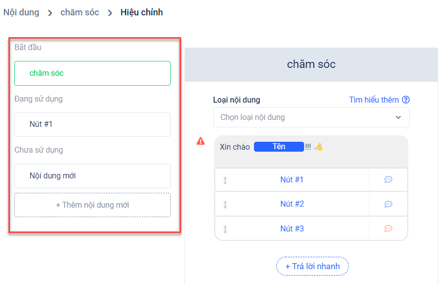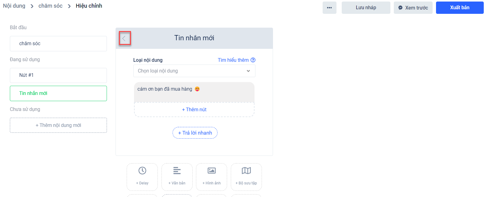 Các chức năng hiệu chỉnh nội dung tin nhắn sẽ hỗ trợ bạn thiết lập các tin nhắn, kịch bản giúp chăm sóc khách hàng tốt hơn.