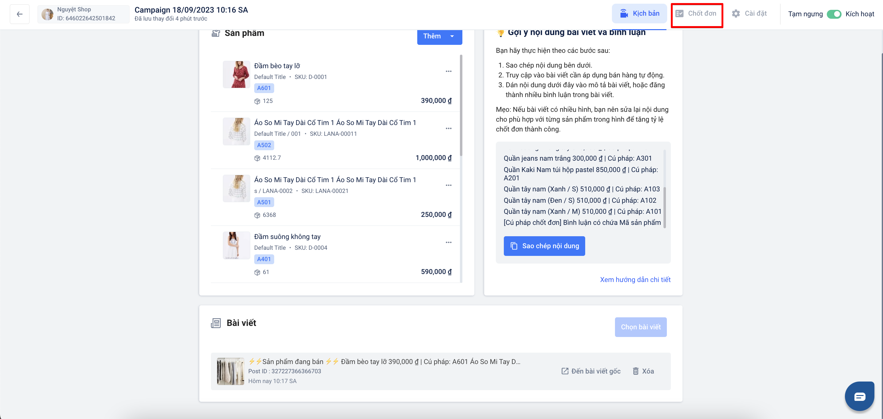 Hướng dẫn thiết lập công cụ Tin bán hàng (Post/Reels) trên Harasocial