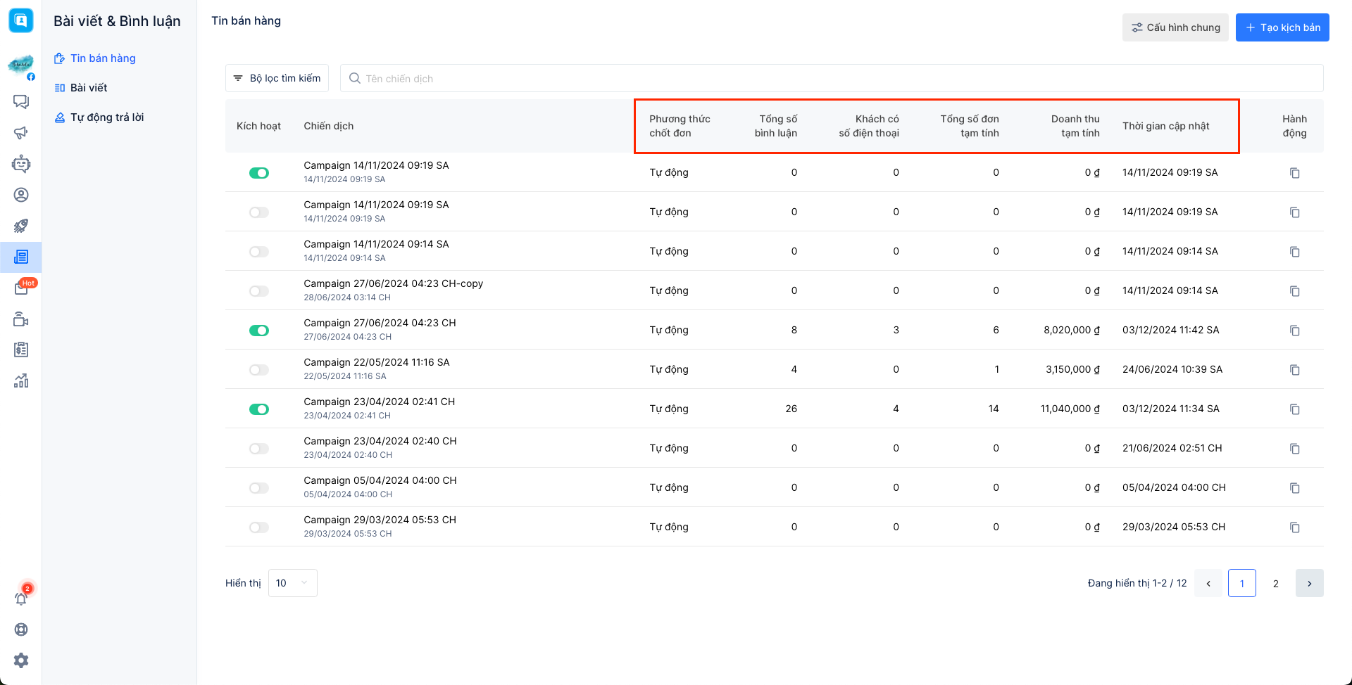 Nhà bán hàng có thể theo dõi được các chỉ số bán hàng như: số bình luận, doanh thu,... Tuy nhiên tại đây có 2 chỉ số mà các nhà bán hàng thường hay quan tâm nhất để đánh giá được mức độ hiệu quả của chiến dịch tin bán hàng: