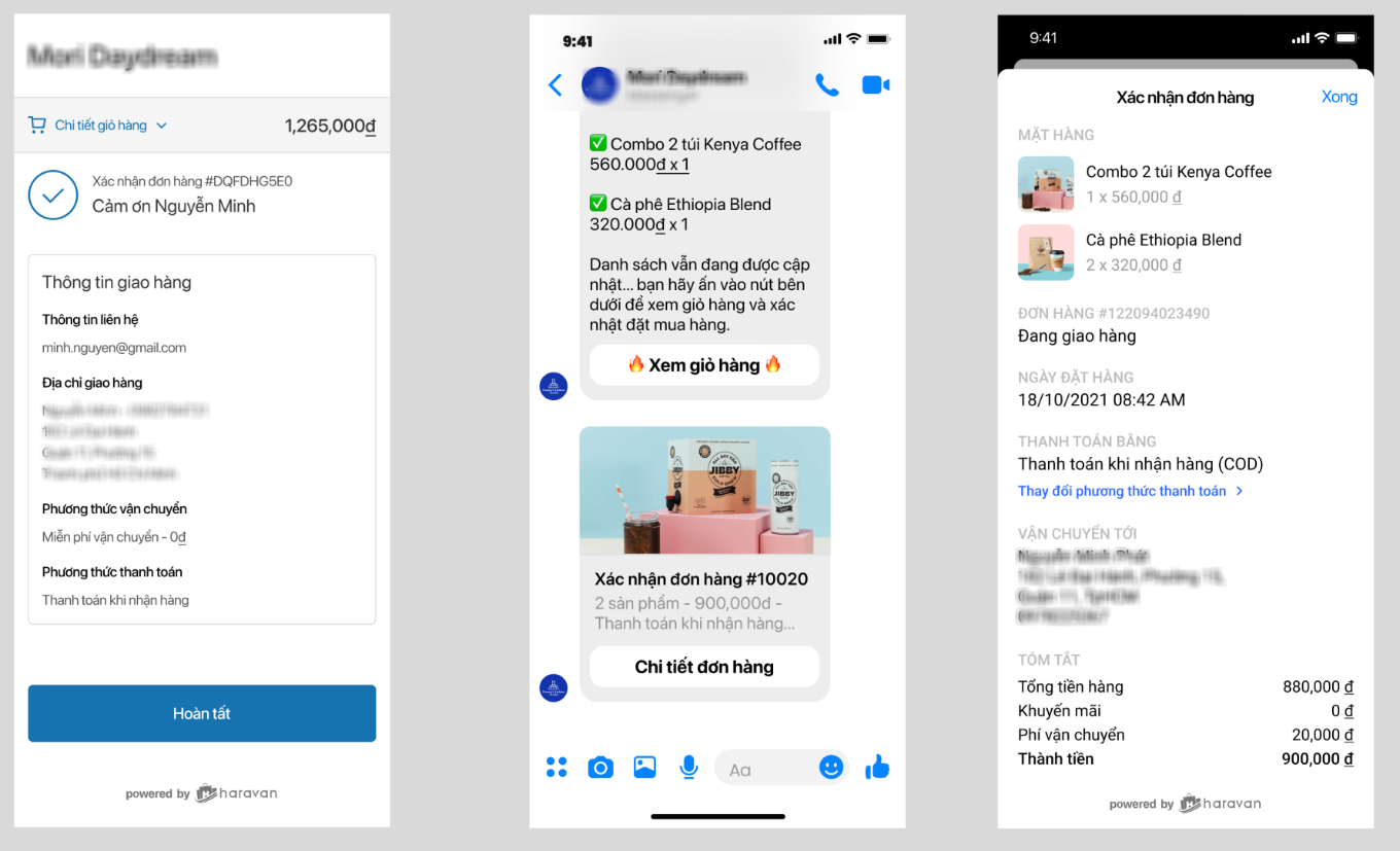 Người mua chỉ cần vào cập nhật thông tin nhận hàng, hệ thống sẽ gửi một mẫu xác nhận đơn hàng đến cho khách là hoàn tất: