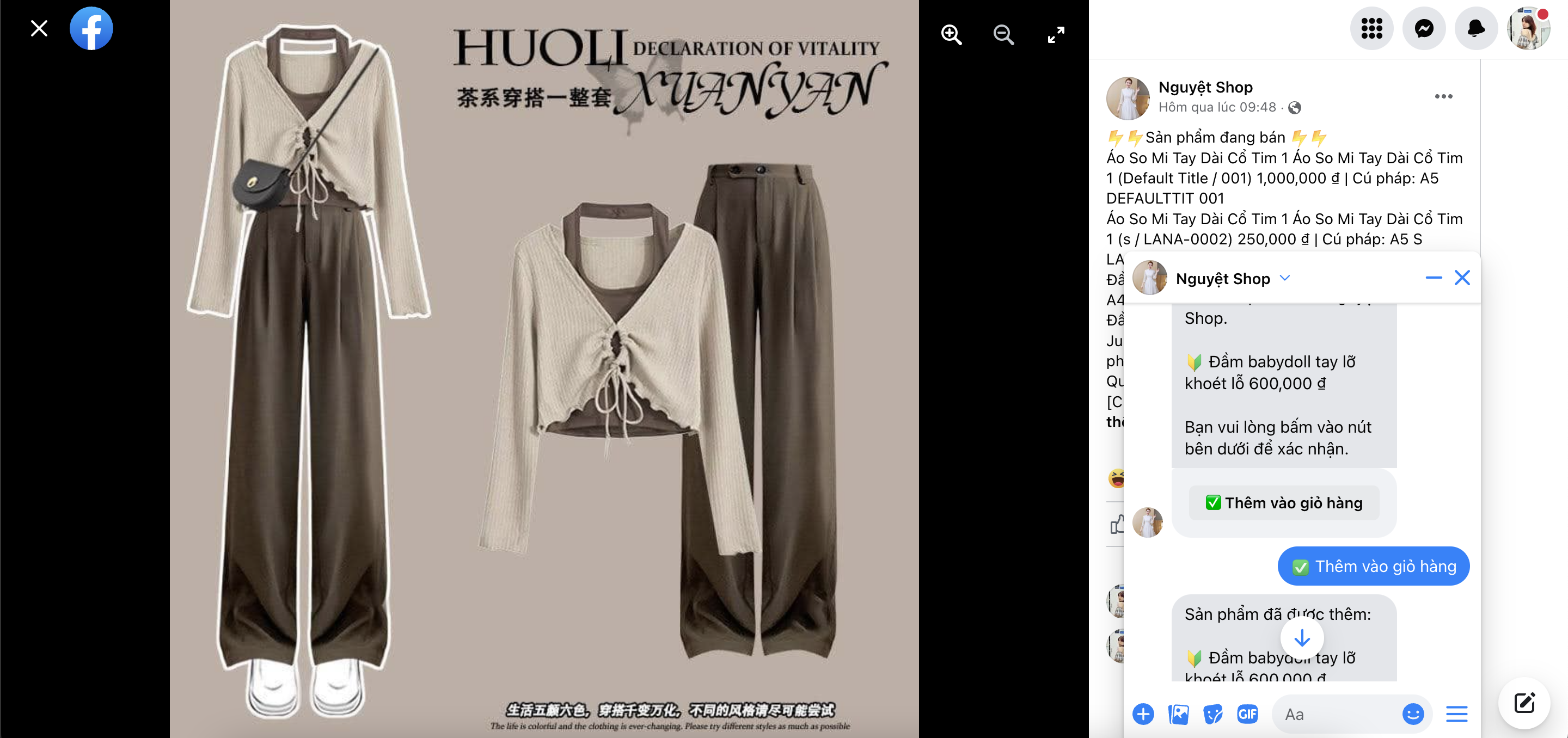 - Giao diện giỏ hàng khi chốt đơn tin bán hàng hoàn tất: