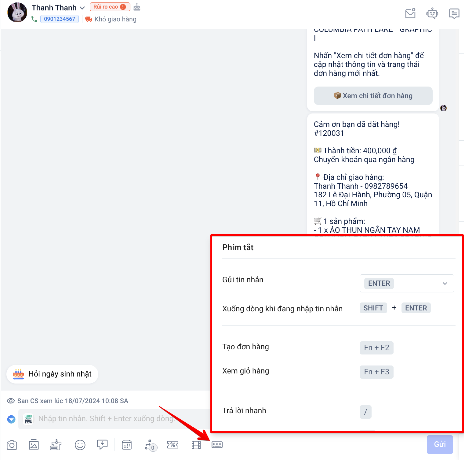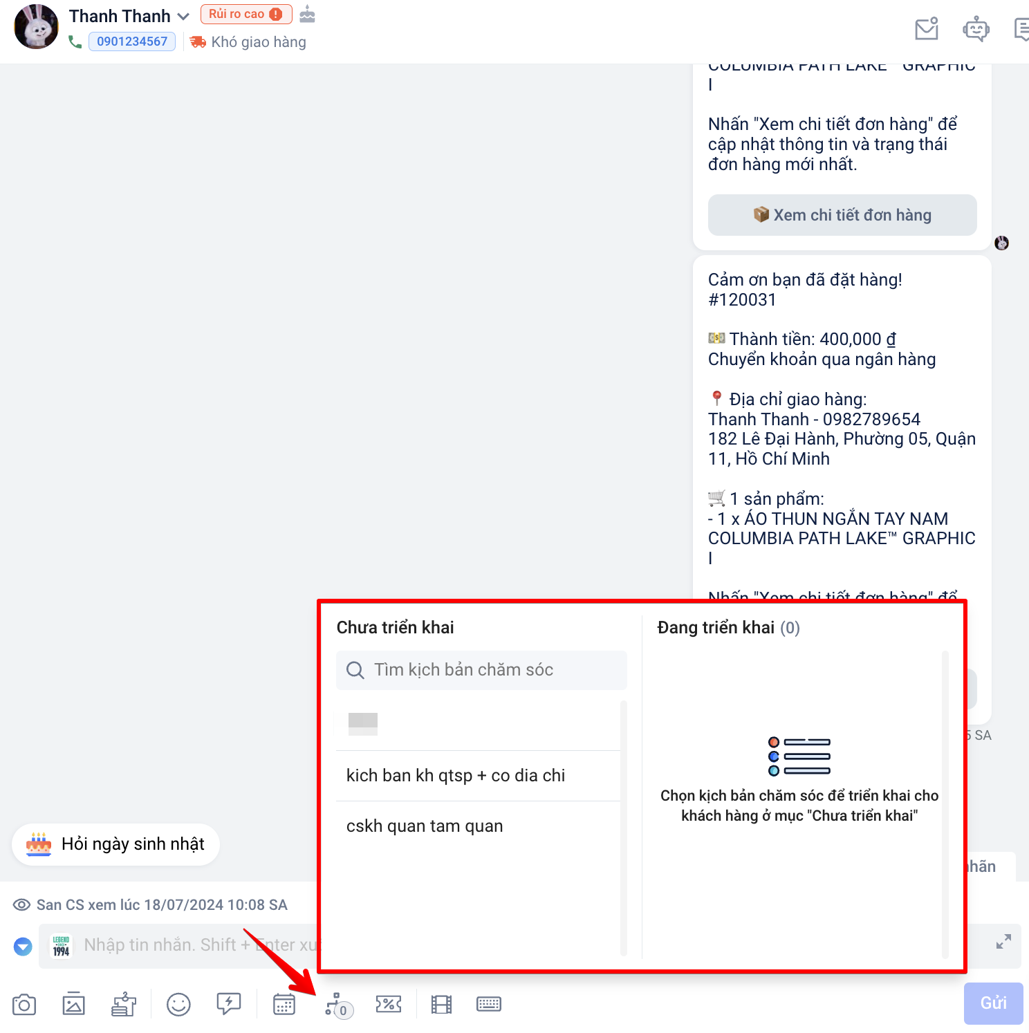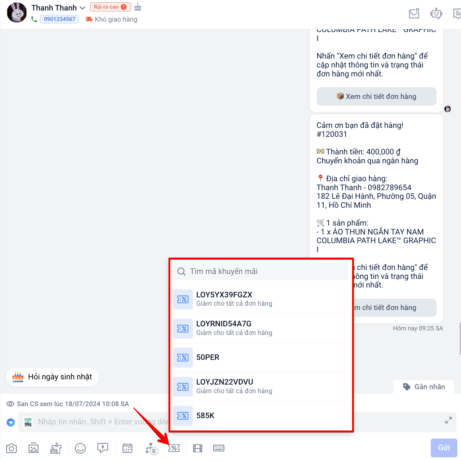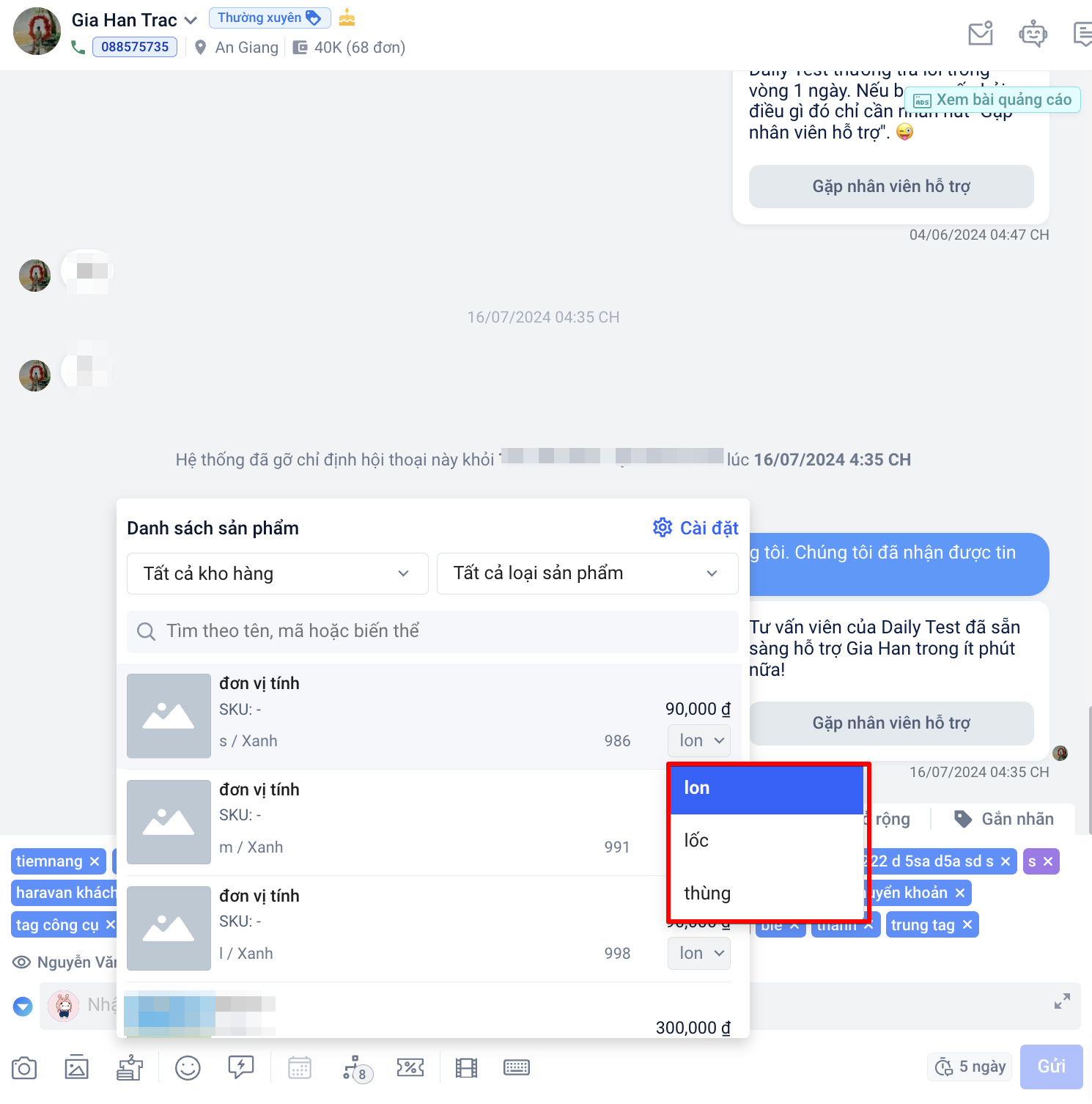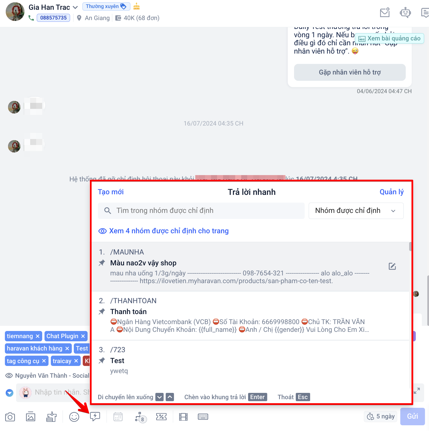 - Tính năng chỉ hoạt động trên hội thoại có tương tác của khách hàng không quá 7 ngày.