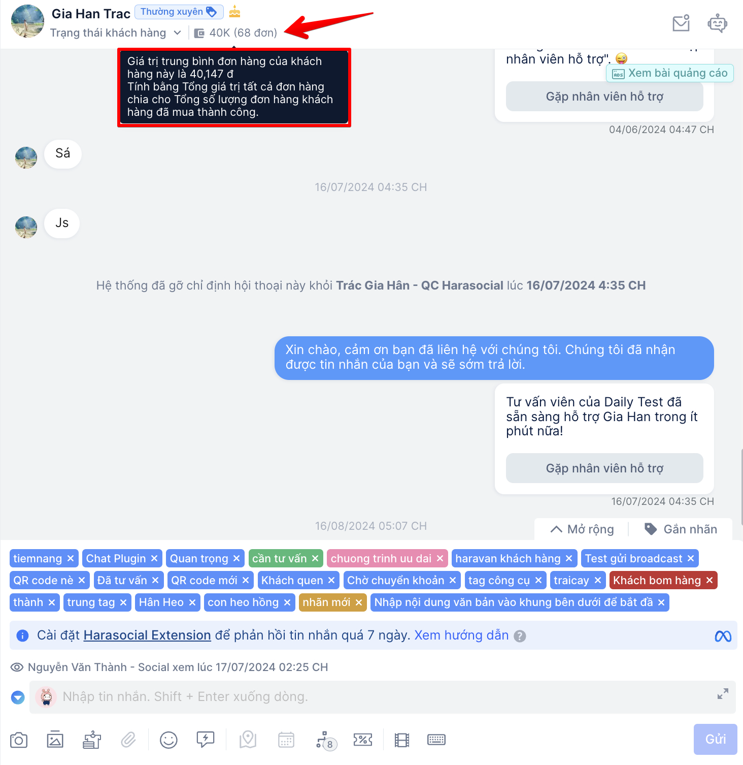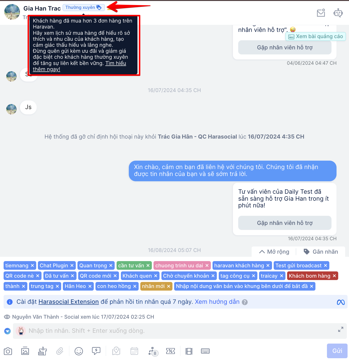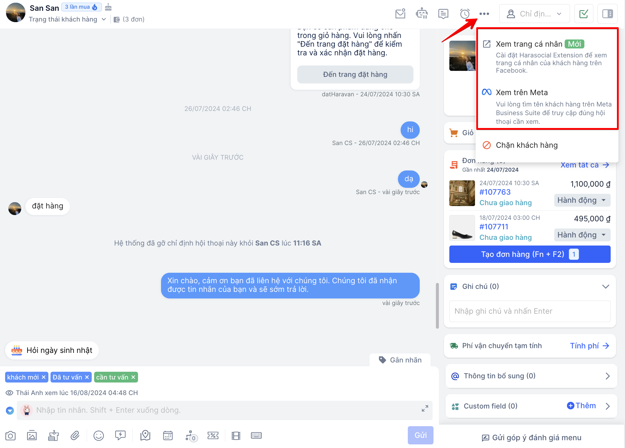 - Cài đặt HaraSocial Extension để xem trang cá nhân của khách hàng.