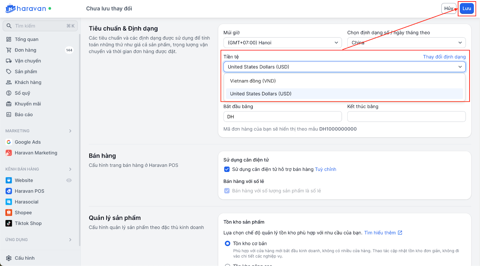 Trước đây, các đơn hàng được tạo trong Harasocial chưa áp dụng giá trị tiền tệ là USD và chưa hiển thị số thập phân theo đơn vị tiền tệ đã chọn. Tuy nhiên, từ ngày 29.04.2025, Harasocial cho phép nhà bán hàng chọn và hiển thị số thập phân đối với đơn vị tiền tệ là USD.