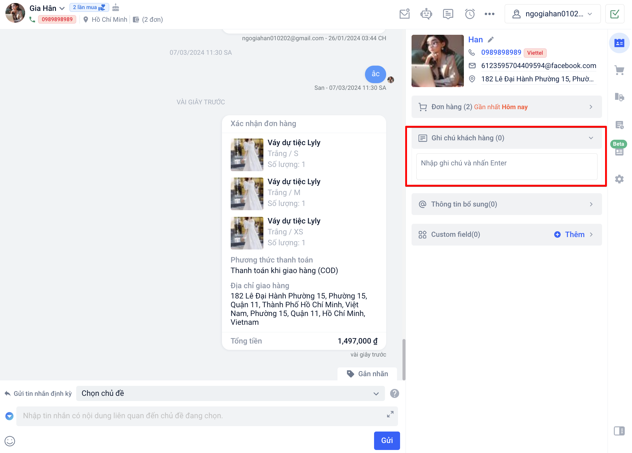 Để note lại những thông tin cần thiết về khách hàng, bạn có thể nhập ghi chú tại đây: