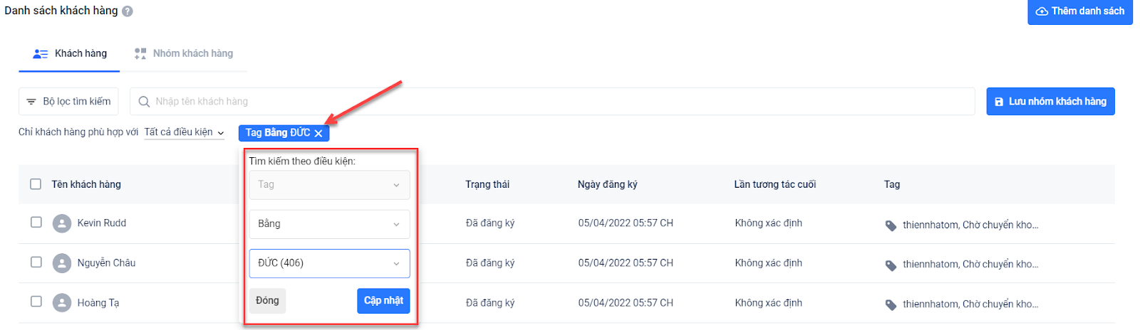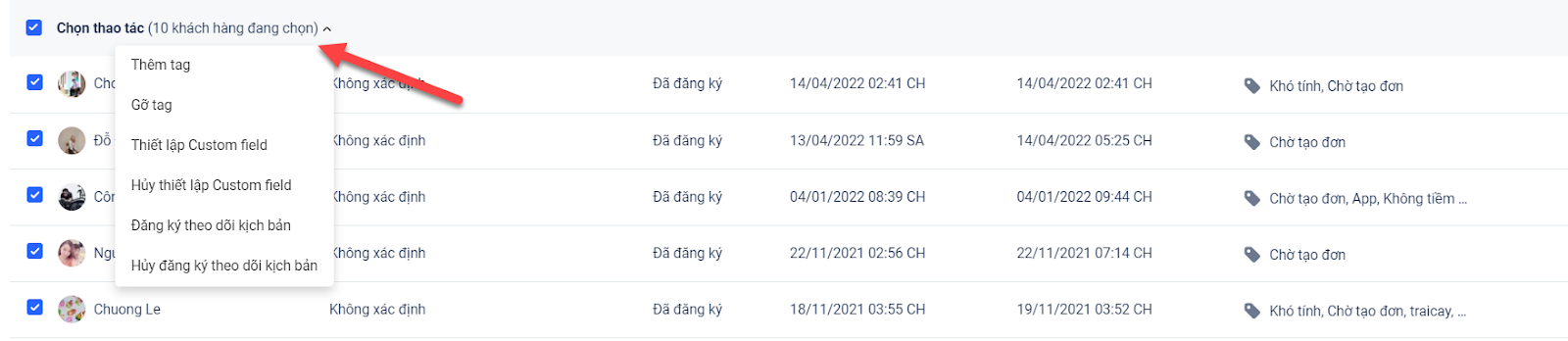 - Sau đó, bạn chỉ cần bấm thêm thao tác mà mình muốn với các khách hàng phù hợp với điều kiện: