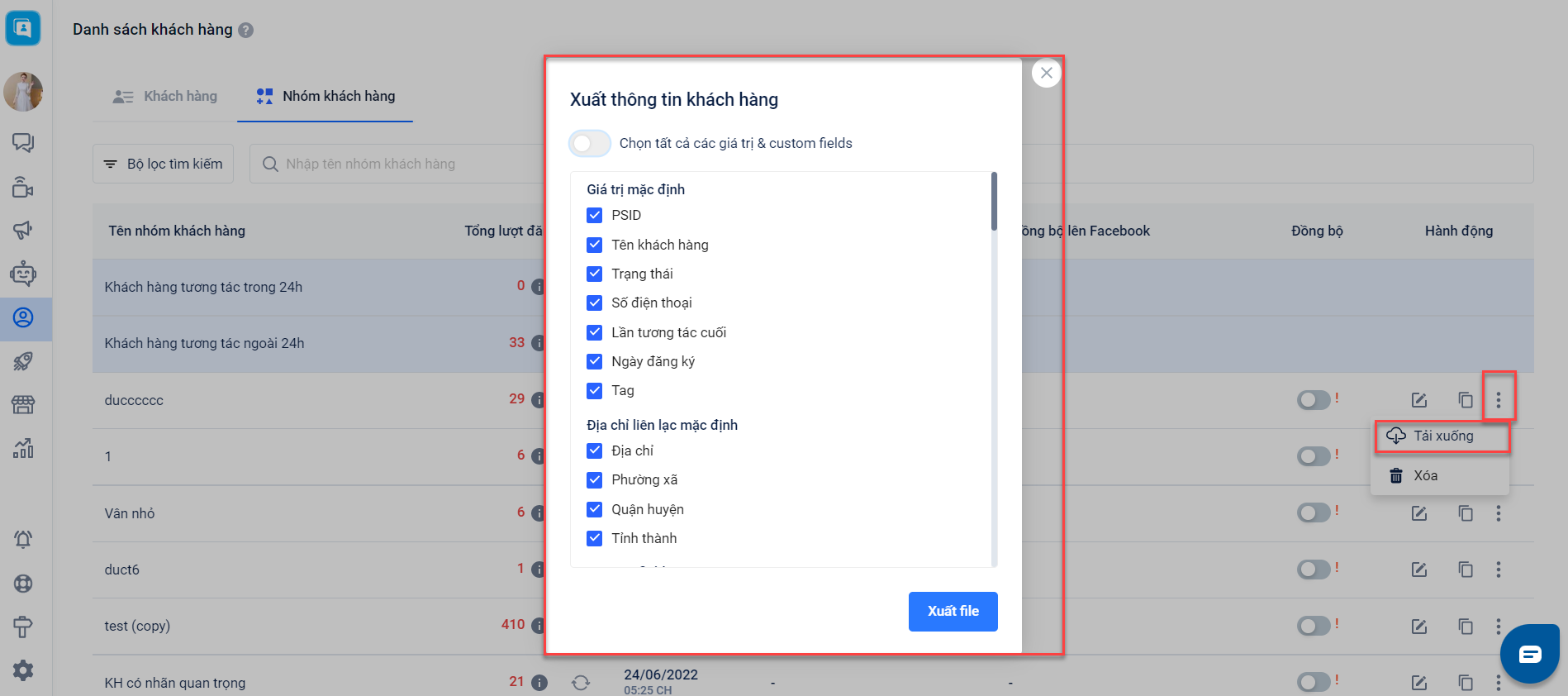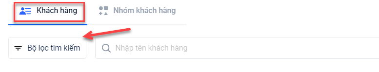 Truy cập khách hàng → tiến hành lọc các khách hàng có chung đặc điểm bạn muốn gom nhóm họ lại: