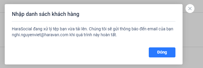Để có thêm được nhiều khách hàng hơn từ các dữ liệu ngoài hoặc hệ thống khác, Harasocial cho phép nhập 1 lúc nhiều khách hàng có đầy đủ thông tin cá nhân chỉ với chức năng "Thêm danh sách".