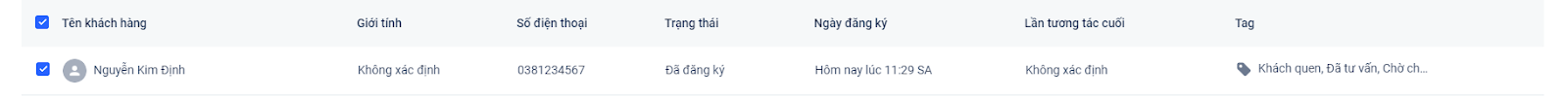 Khi đó bên danh sách khách hàng tại Harasocial, các thông tin khách hàng sẽ được hiển thị đầy đủ như sau: