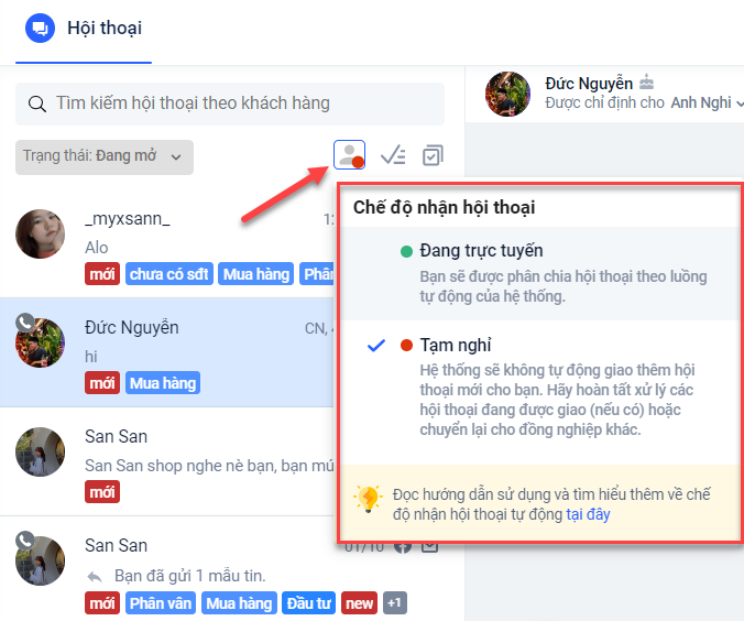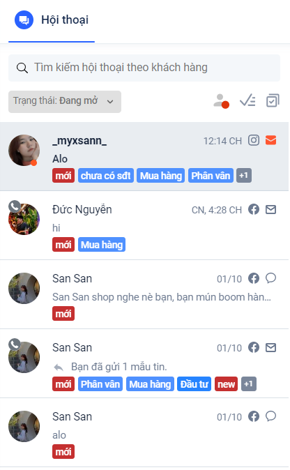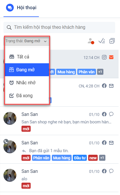 Với việc phân chia hội thoại theo trạng thái sẽ giúp phân loại tốt hơn tình trạng hội thoại, các nhân viên có thể dễ dàng vào xử lý theo trình tự để mang lại hiệu quả cao hơn và không gây ra tình trạng thiếu sót khi chăm sóc khách hàng.