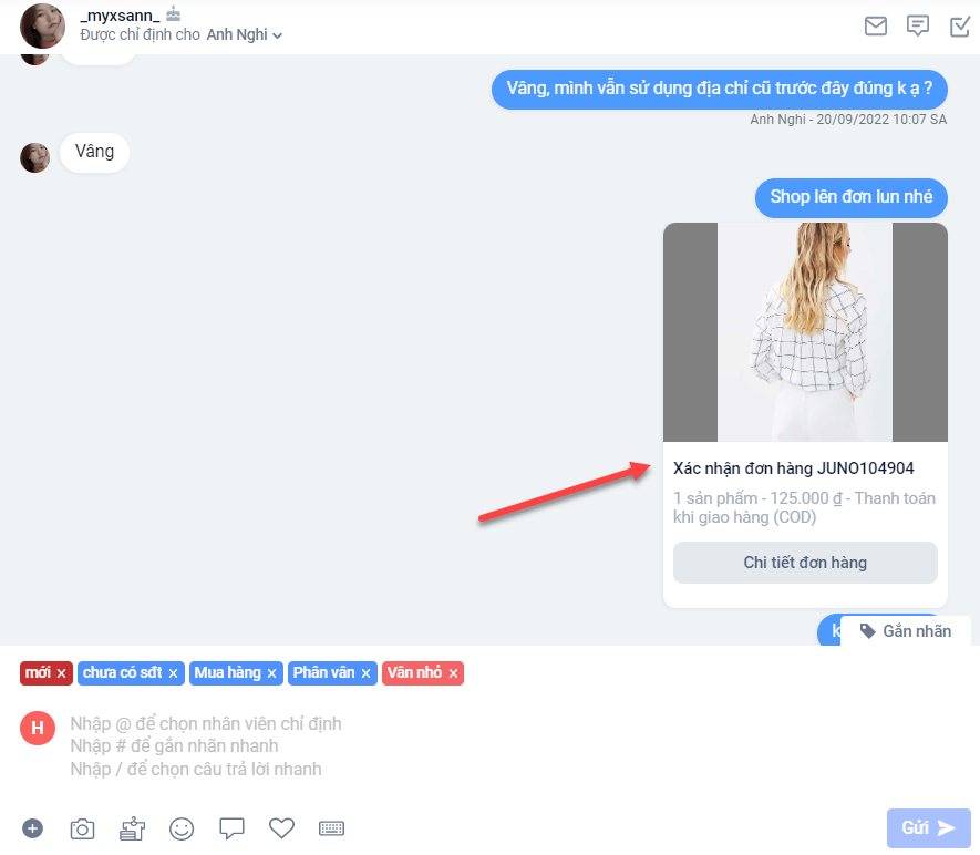 Dựa vào thống kê trạng thái và lịch sử đơn hàng này, nhân viên trực chat cũng có thể upsell hoặc bán lại cho khách hàng cũ dễ dàng: