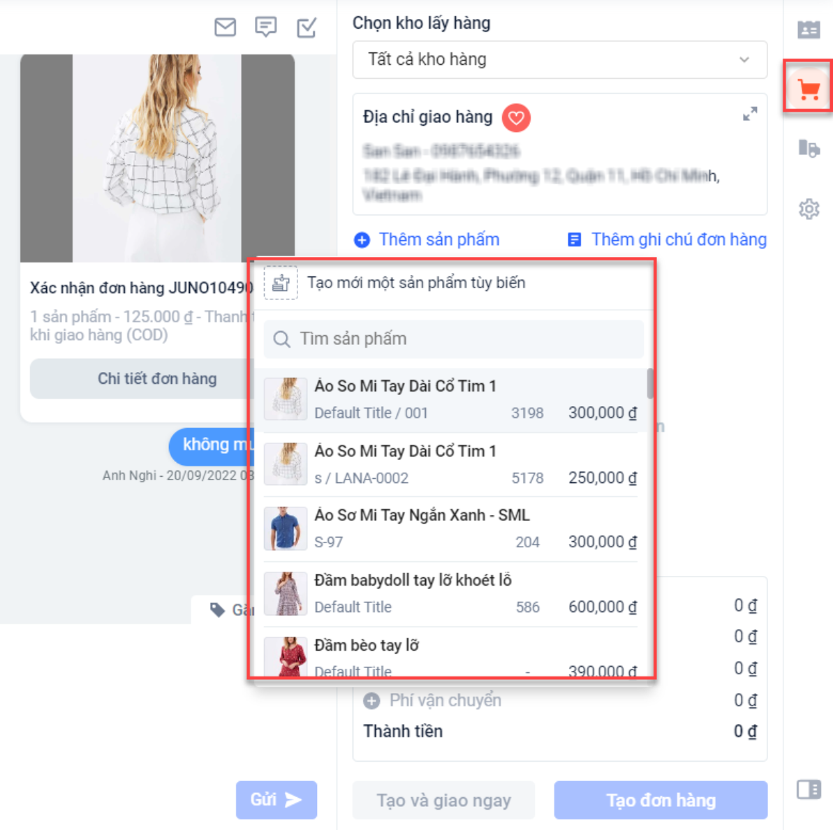 4. Tạo đơn hàng ngay trong khi chat:
