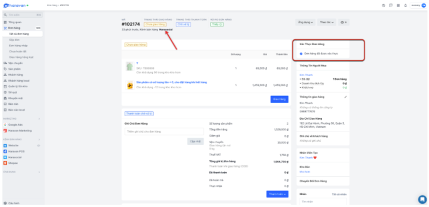 Sự kiện chờ thanh toán sẽ được gửi ra khi doanh nghiệp tạo đơn hàng hoàn tất tại HaraSocial.