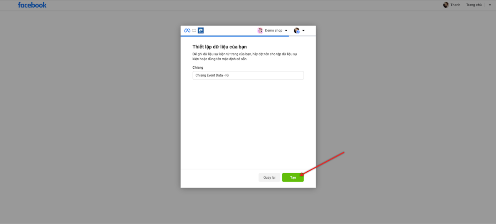 Bước 5: Đặt tên cho tệp dữ liệu của bạn. Meta đã đặt một tên mặc định, bạn có thể cập nhật tên này theo mong muốn.