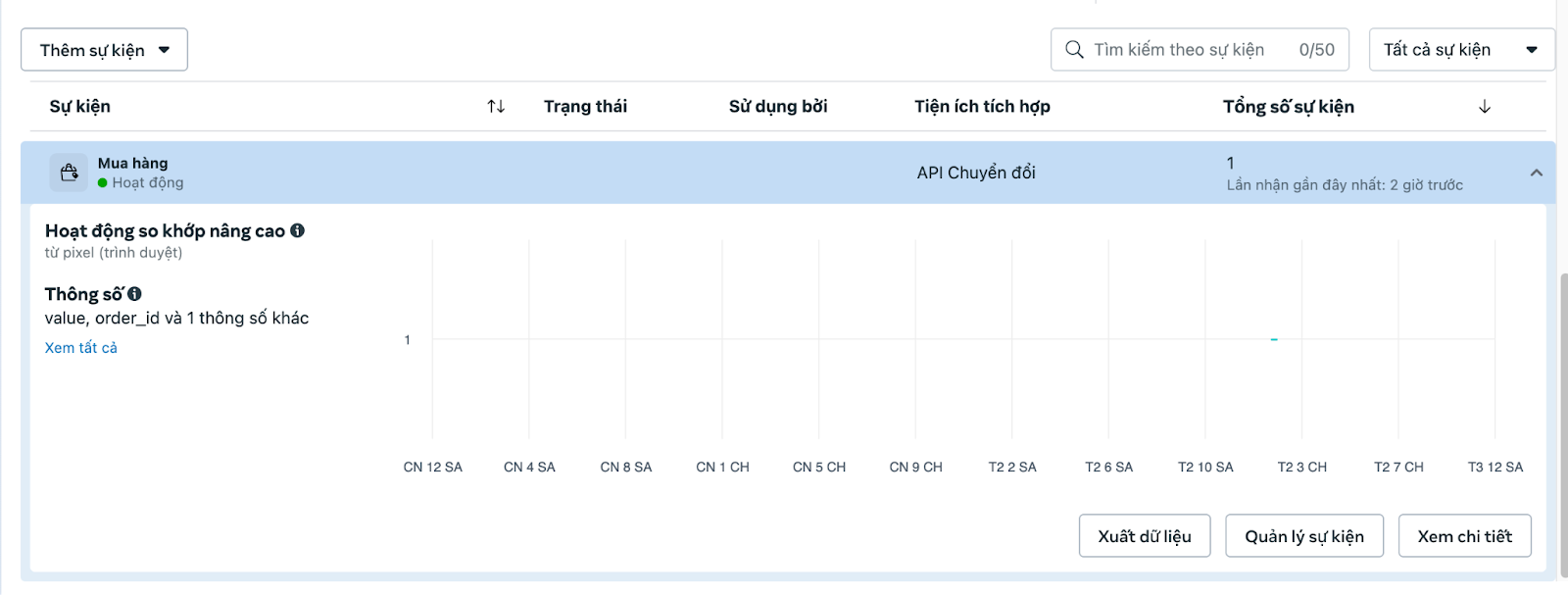 - Sự kiệnPurchas**e** sẽ ghi nhận trên tổng tiền đơn hàng, cho dù đơn đó có phát sinh thanh toán 1 phần hay thanh toán hoàn toàn. Không trừ ngược lại thông tin sự kiện **Purchase**khi đơn hàng thay đổi trạng thái như: hoàn tiền, huỷ, xoá,....