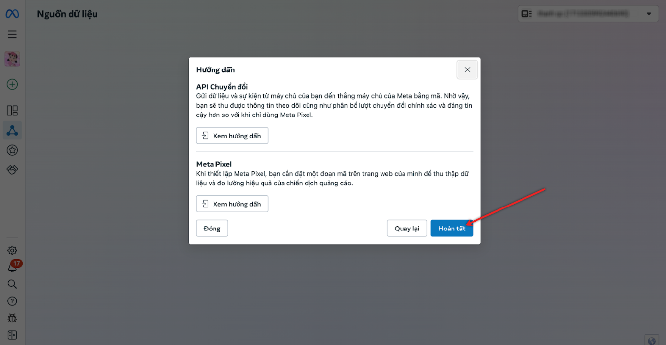 - Tài khoản Facebook doanh nghiệp**:** Bạn phải có quyền truy cập vào Tập dữ liệu (Dataset) trên Facebook Ads.