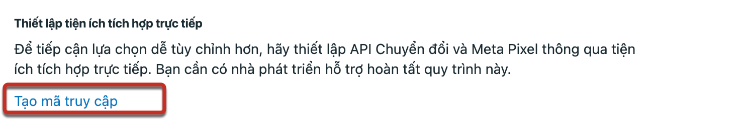 - Tiếp tục kéo xuống mục**“Thiết lập tiện ích tích hợp trực tiếp" →**bấm “Tạo mã truy cập", khi đó hệ thống sẽ tạo ra 1 đoạn mã Token, đây chính là Access Token.