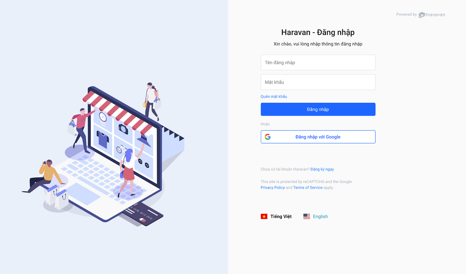 Bạn truy cập https://accounts.haravan.com/ để đăng ký cho mình 1 tài khoản Haravan hoặc đăng nhập vào tài khoản đã có