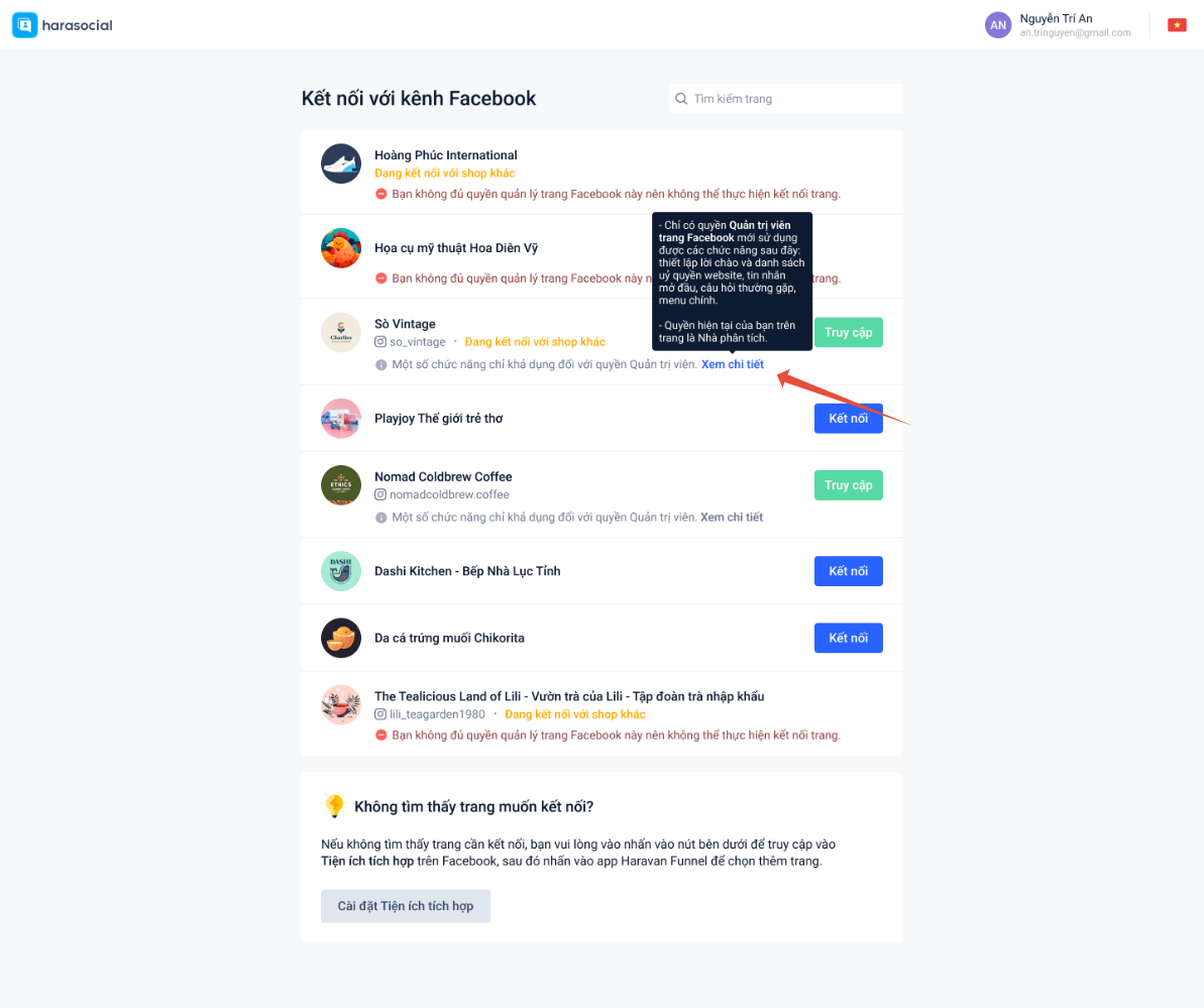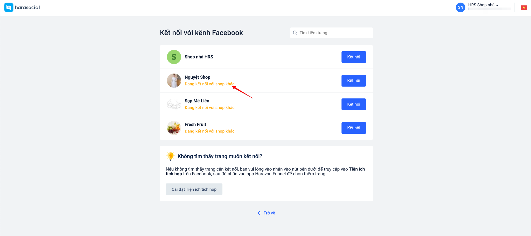 2. Kết nối fanpage Facebook vào HaraSocial: