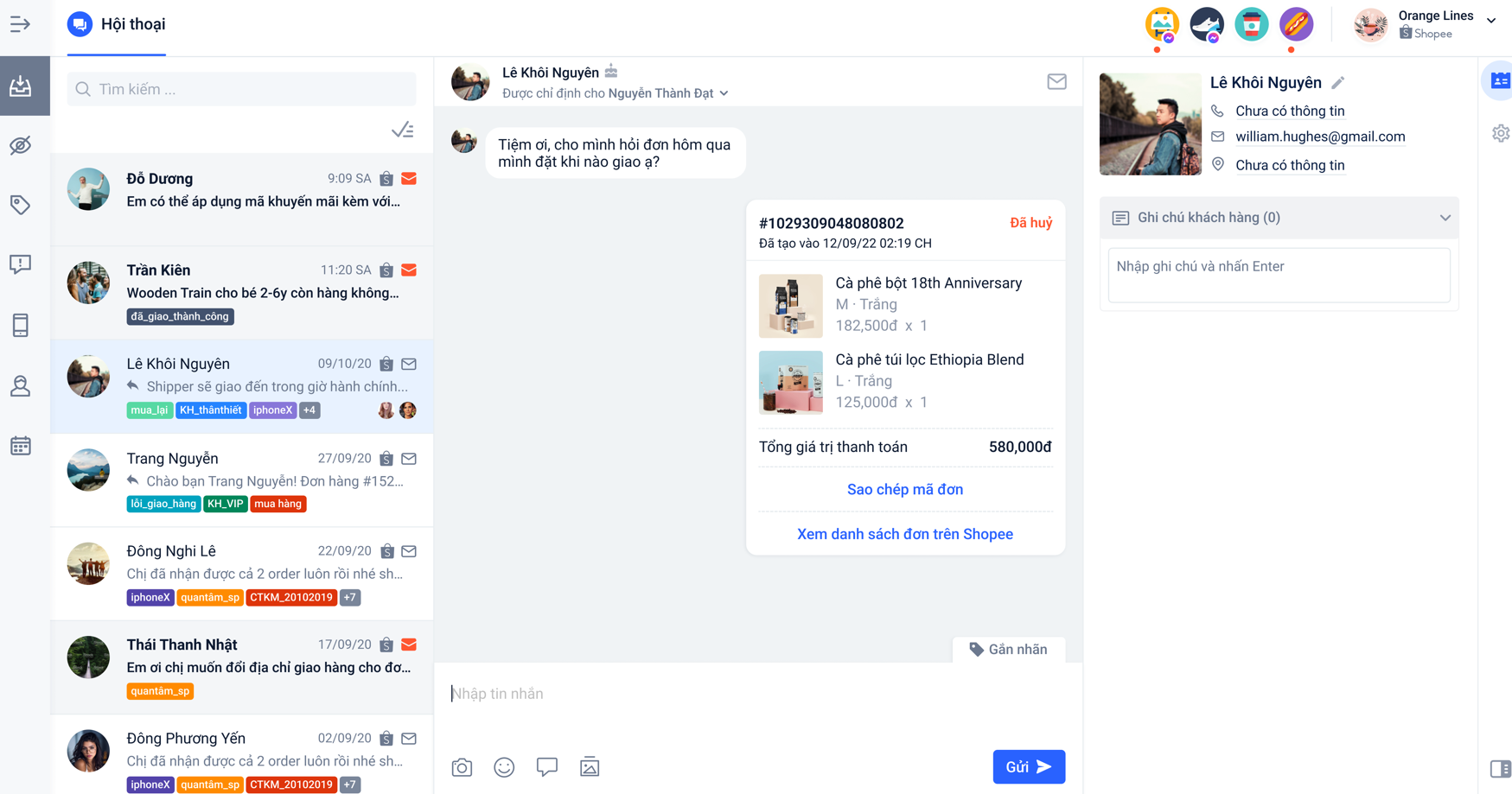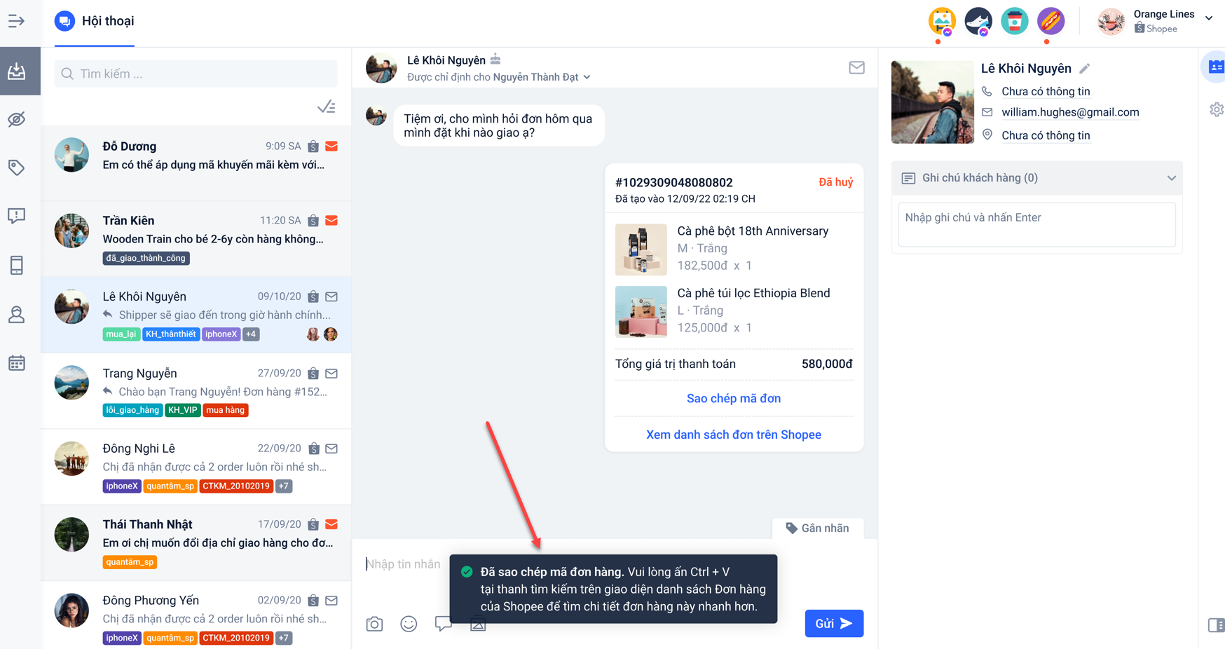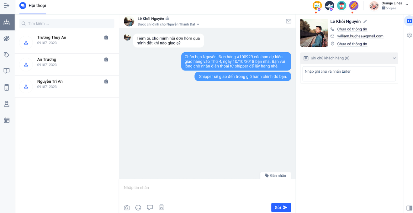 2. Các tính năng Hội thoại của kênh chat Shopee: