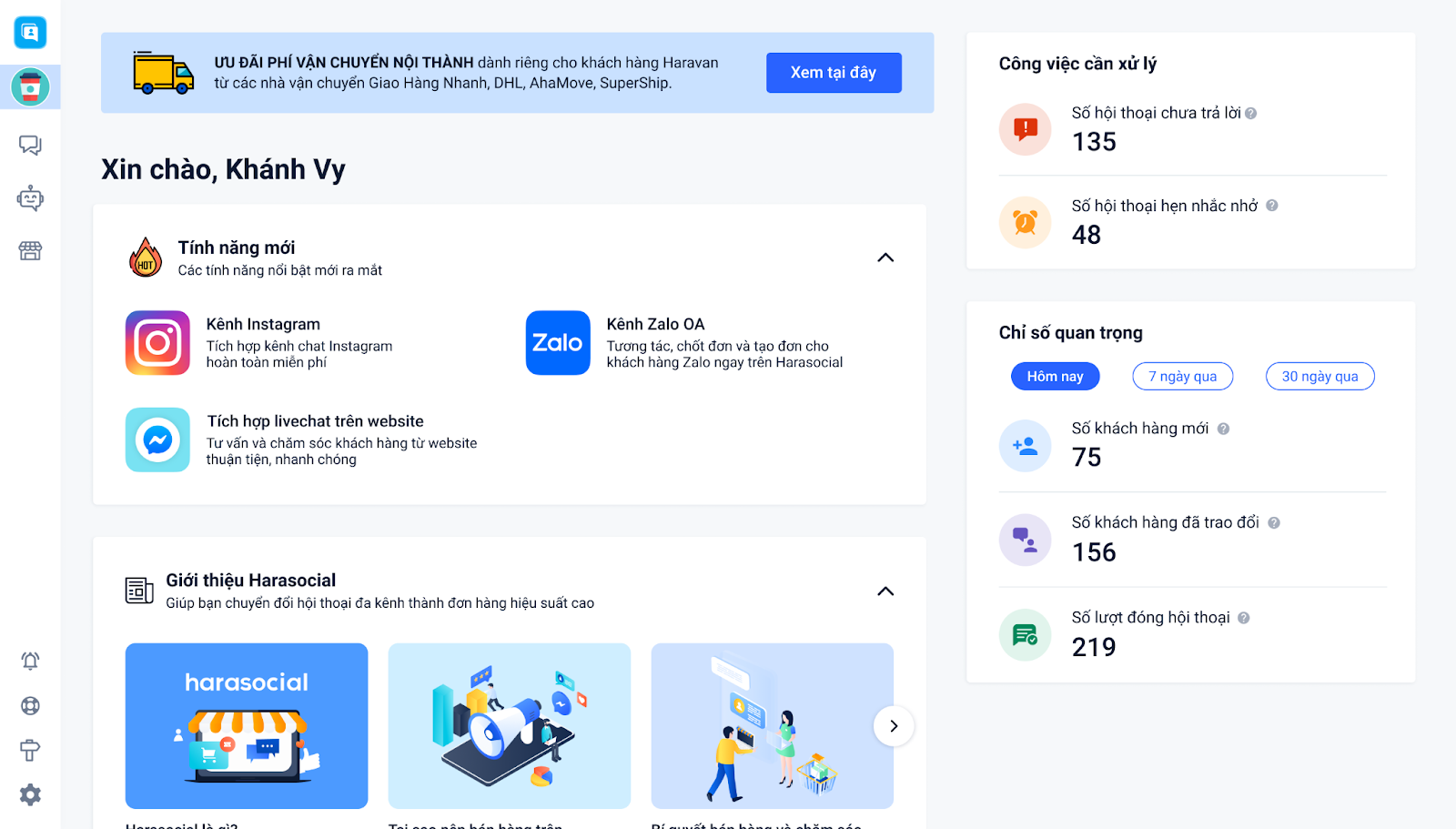 Chính vì điều này, nhằm có thể theo dõi, chăm sóc và trả lời thắc mắc từ khách hàng về các sản phẩm có trên sàn. Harasocial đã cho phép kết nối và đồng bộ kênh chat từ sàn thương mại điện tử Shopee về hội thoại Haraocial, từ đó nhà bán hàng có thể trực tiếp thực hiện việc kinh doanh trên cùng một phương diện vô cùng tiện lợi.