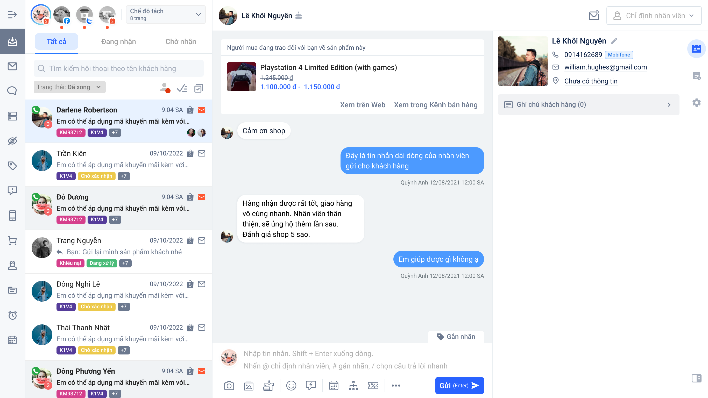- Chỉ định hội thoại cho nhân viên trực chat.