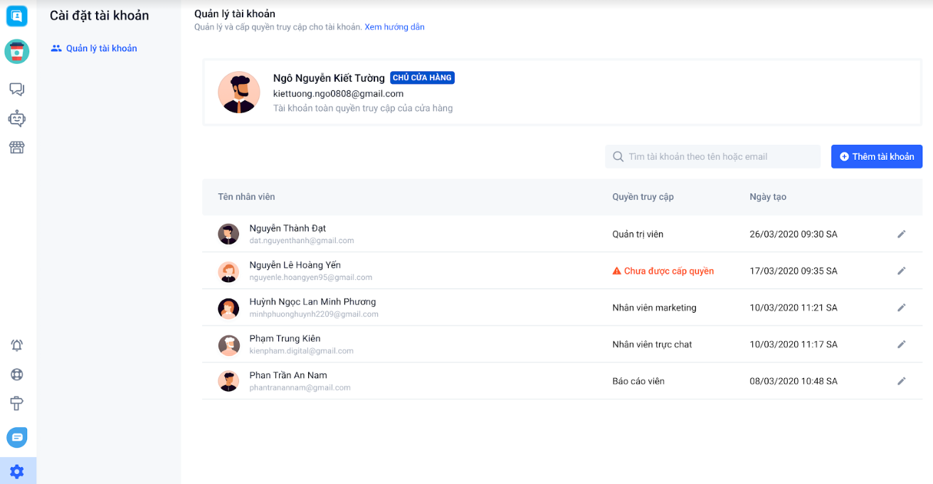 Lưu ý: Chỉ có quyền Chủ cửa hàng mới có thể thực hiện thêm tài khoản.