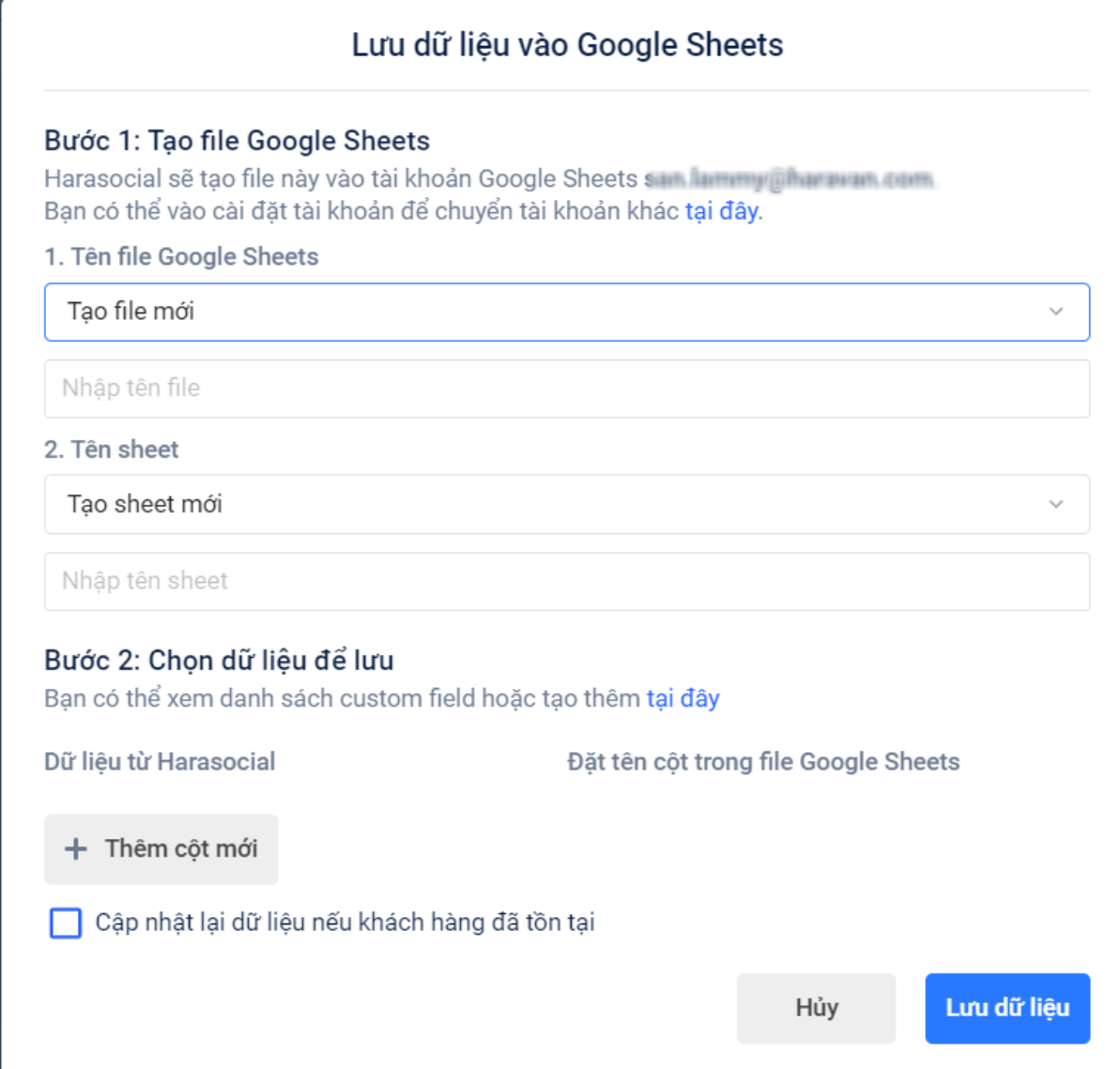 Kết nối tích hợp Google Sheet: