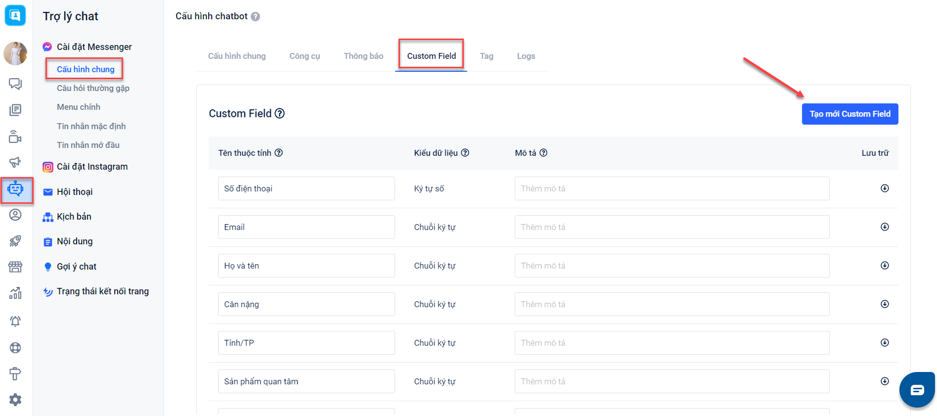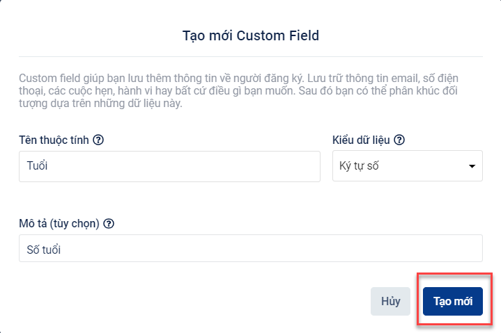 Để bạn có thể áp dụng được các trường thông tin vào kịch bản và biết được cách vận hành của tính năng Custom field này, bạn có thể xem thêm hướng dẫn tại đây.