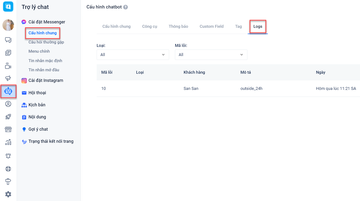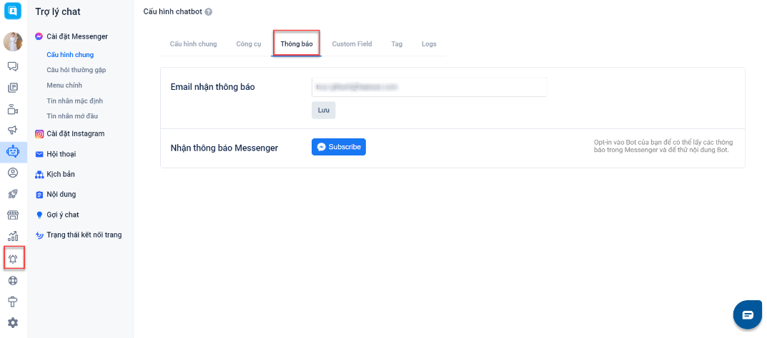 Bạn có thể tham khảo về các mục có trong Cấu hình chung chatbot tại đây.