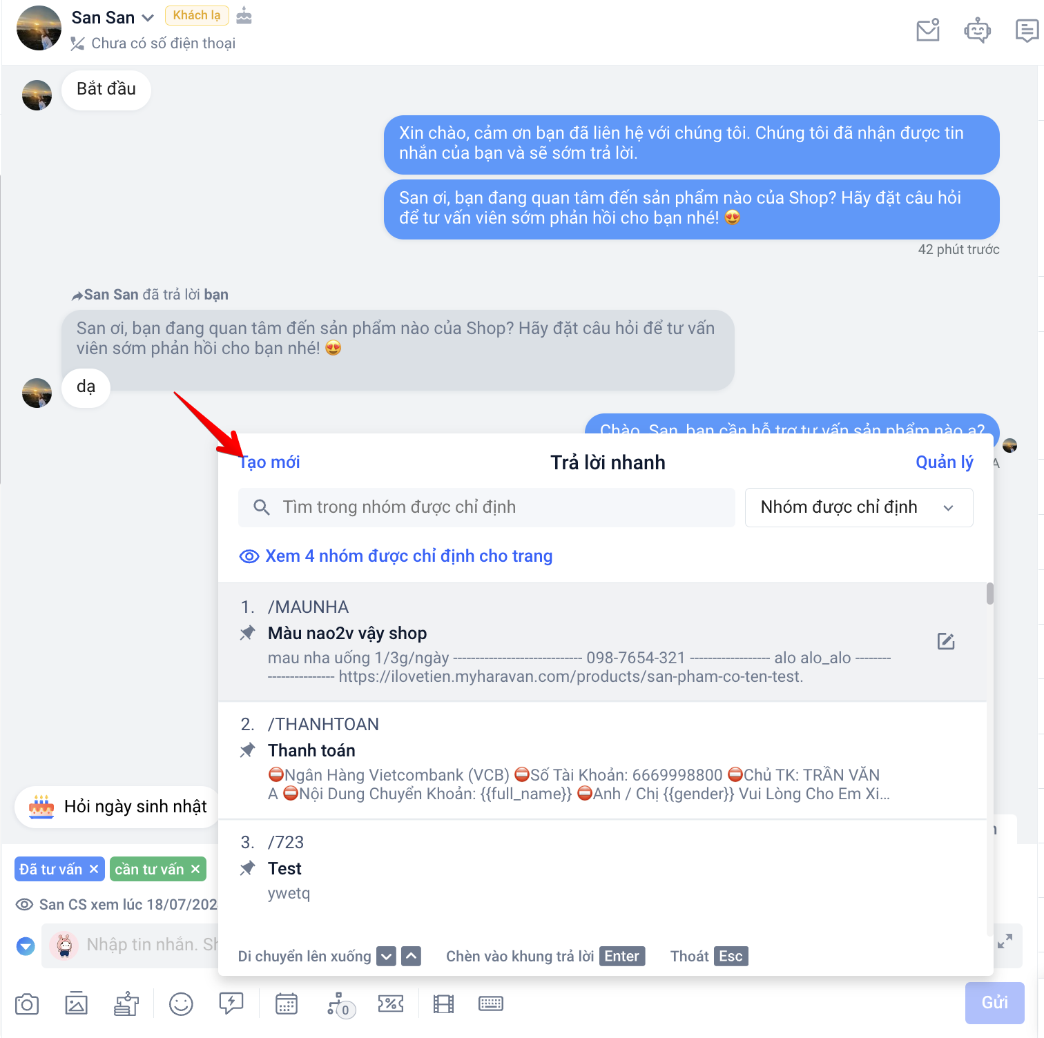 Tính Năng Trả Lời Nhanh Trong Hội Thoại HaraSocial
