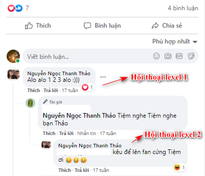 - Số hội thoại bình luận đã trả lời: tổng số hội thoại là bình luận mà nhân viên đã trả lời. Hệ thống chỉ tính bình luận ở cấp đầu tiền (level 1)*. Không trừ ngược lại số liệu khi bình luận đã xóa.