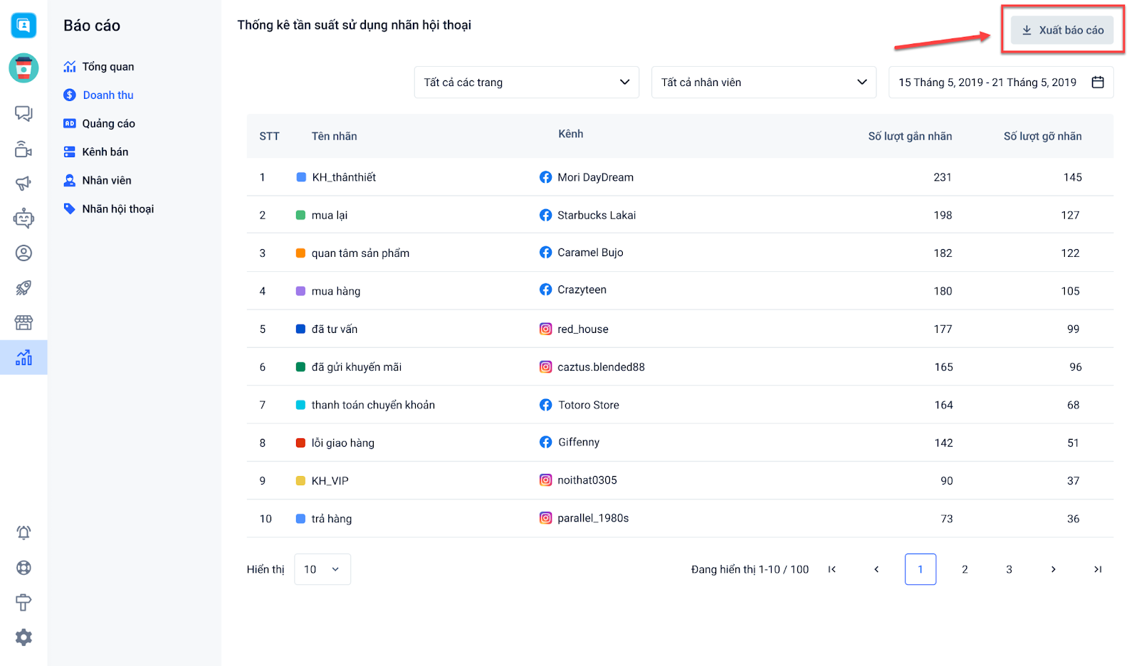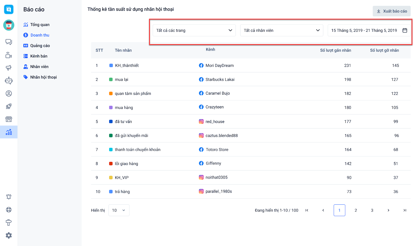 - Báo cáo nhãn hội thoại.