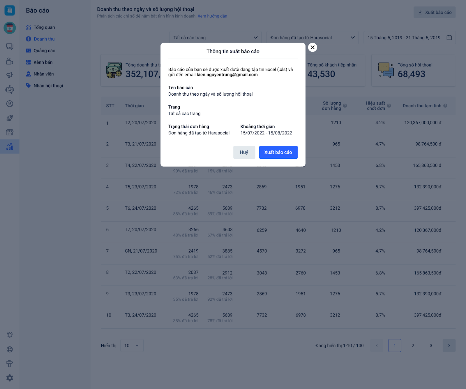 Với thao tác xuất báo cáo này, nhà bán hàng hoặc nhân viên sẽ có được số liệu để thực hiện báo cáo hàng tuần nhằm đưa ra các giải pháp kinh doanh phù hợp hơn.