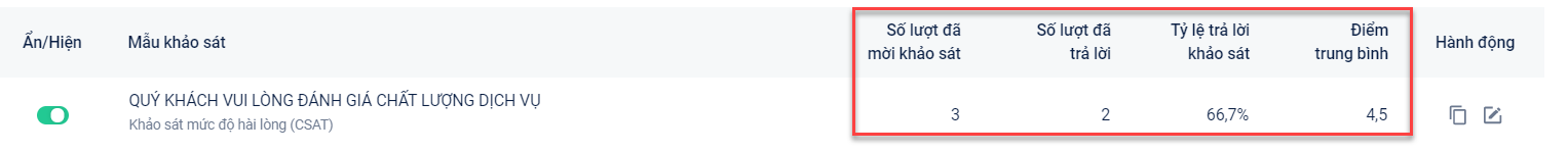 - Kết quả đánh giá khảo sát hiển thị trong hội thoại Harasocial: