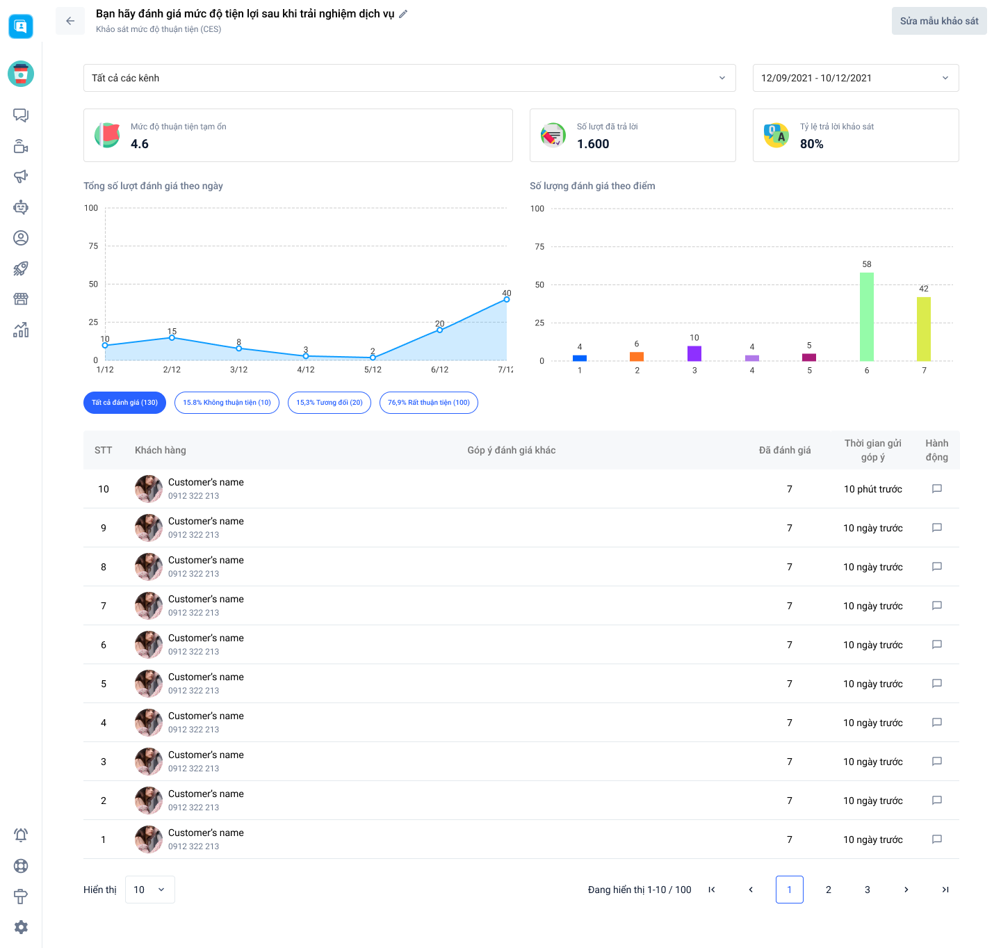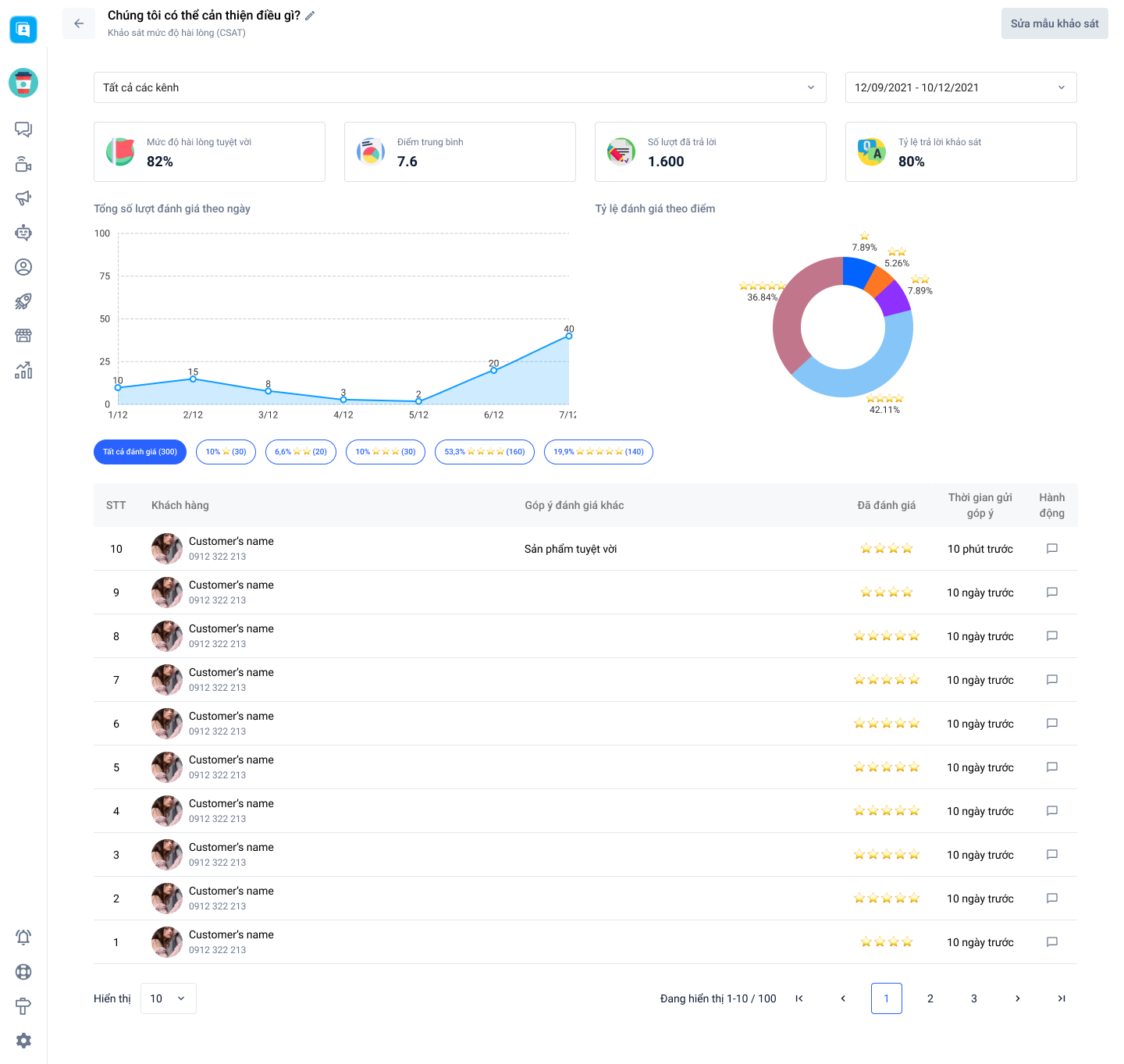 - Đo lường các chỉ số quan trọng như CSAT, NPS và CES.