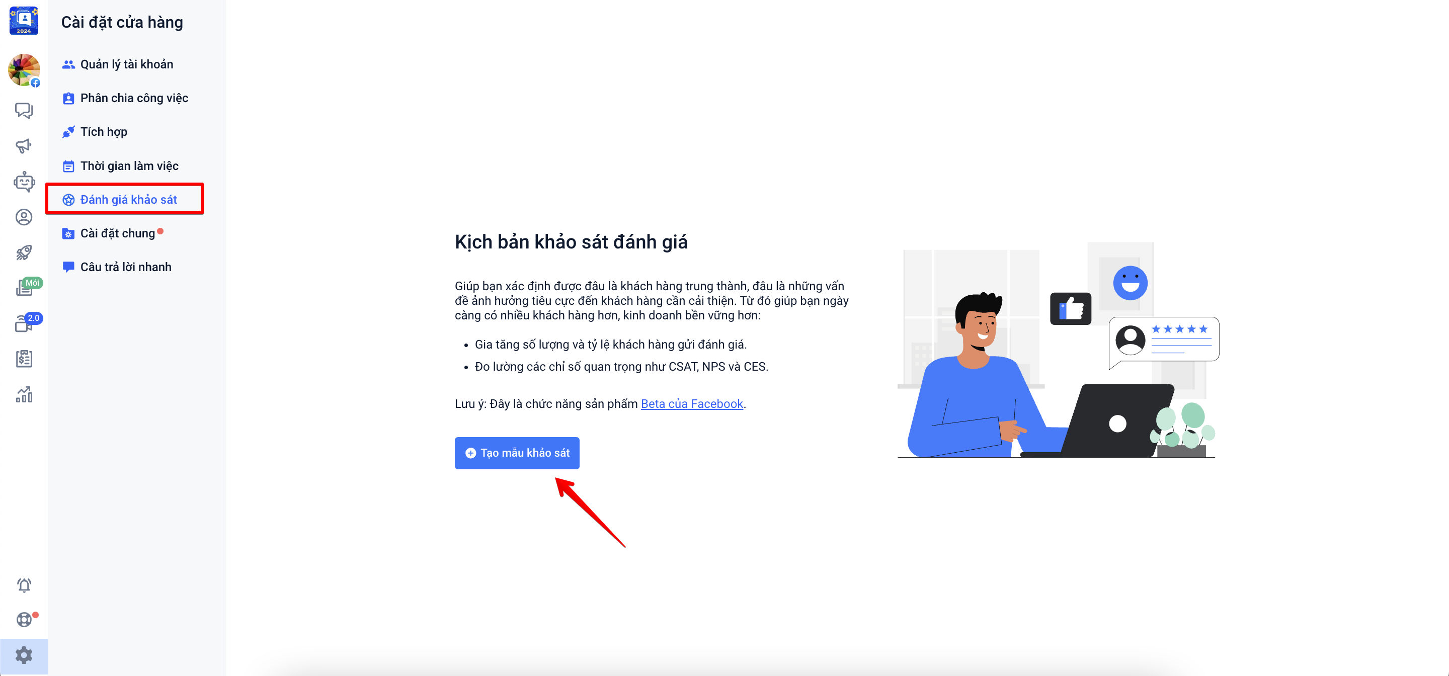 Truy cập Cài đặt tài khoản → Chọn Đánh giá khảo sát: