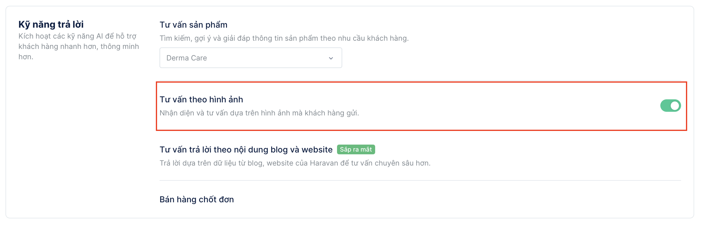 Khi bật tính năng này, trợ lý AI sẽ có thể nhận diện và tư vấn dựa trên hình ảnh mà khách hàng gửi: