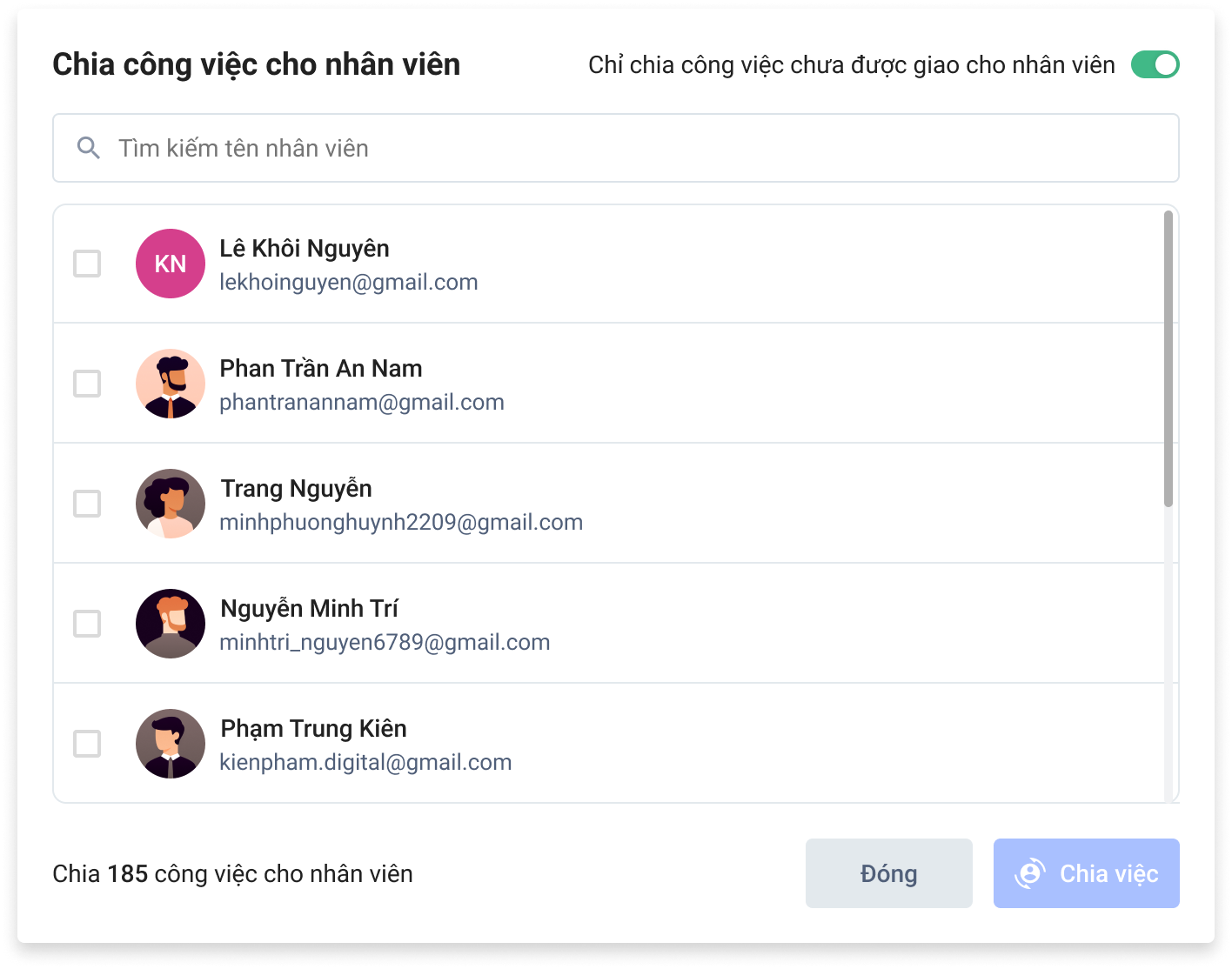 - Chia việc cho nhân viên: