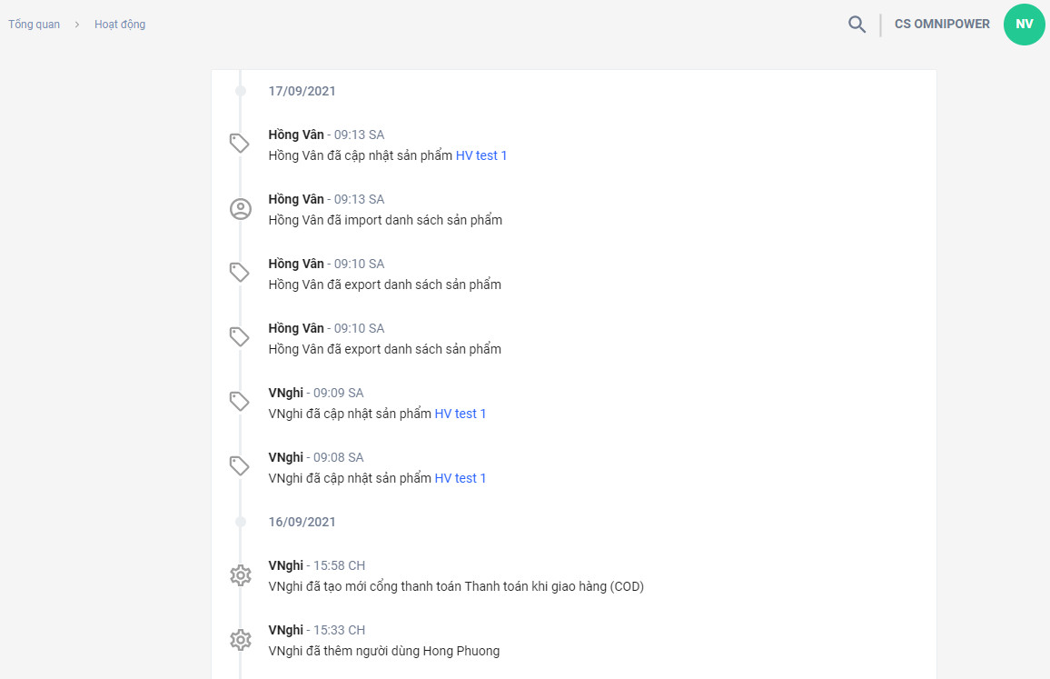 Thao tác của tất cả các tài khoản trên trang quản trị MyHaravan đều được ghi nhận lại, nhằm hỗ trợ chủ shop theo sát hoạt động nhân viên của mình.